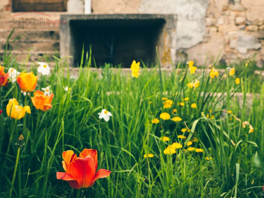 Un porte à l’arrière de la maison est disponible, permettant d’accéder à un terrain clôturé, arboré, exposé SUD. Le terrain ainsi que la maison d’habitation, font 6.62 ares + 8.65 ares.