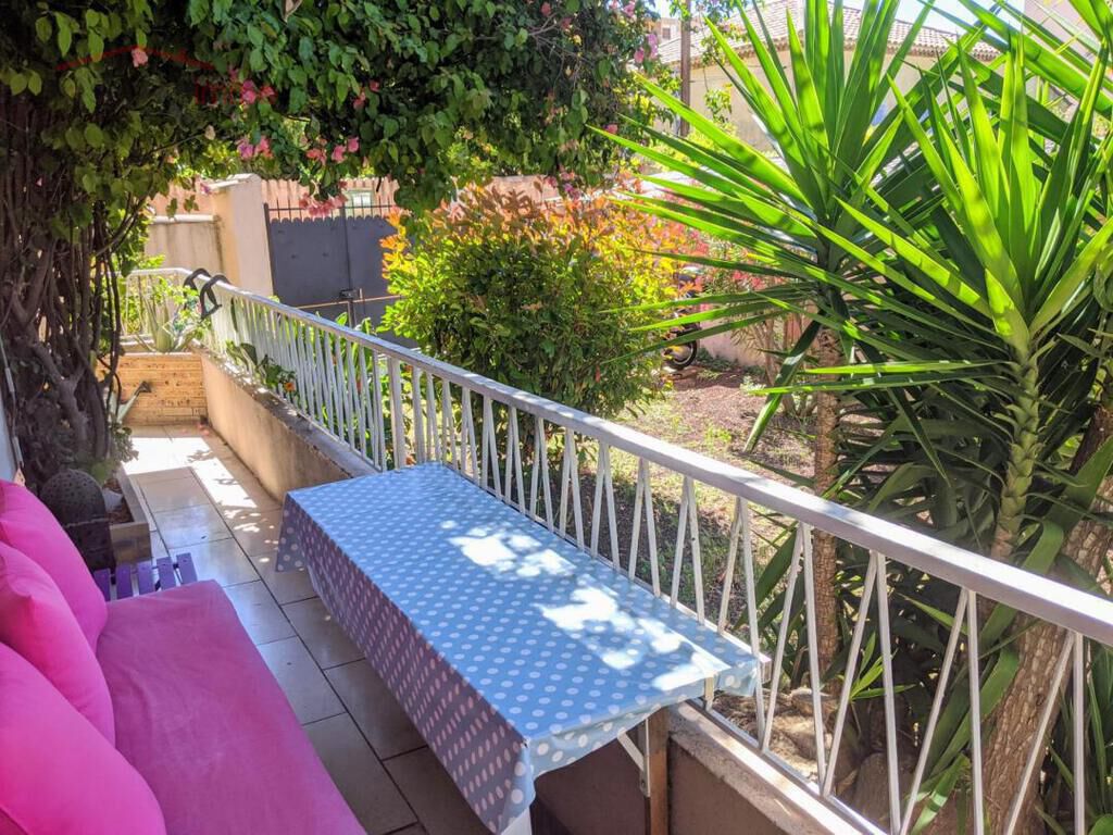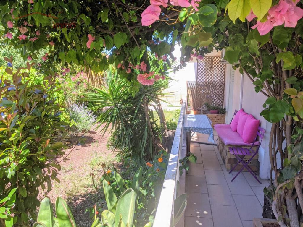 Aucun vis à vis, le balcon fleuri desservant la pièce de vie donne sur l'extérieur du jardin verdoyant de la résidence.