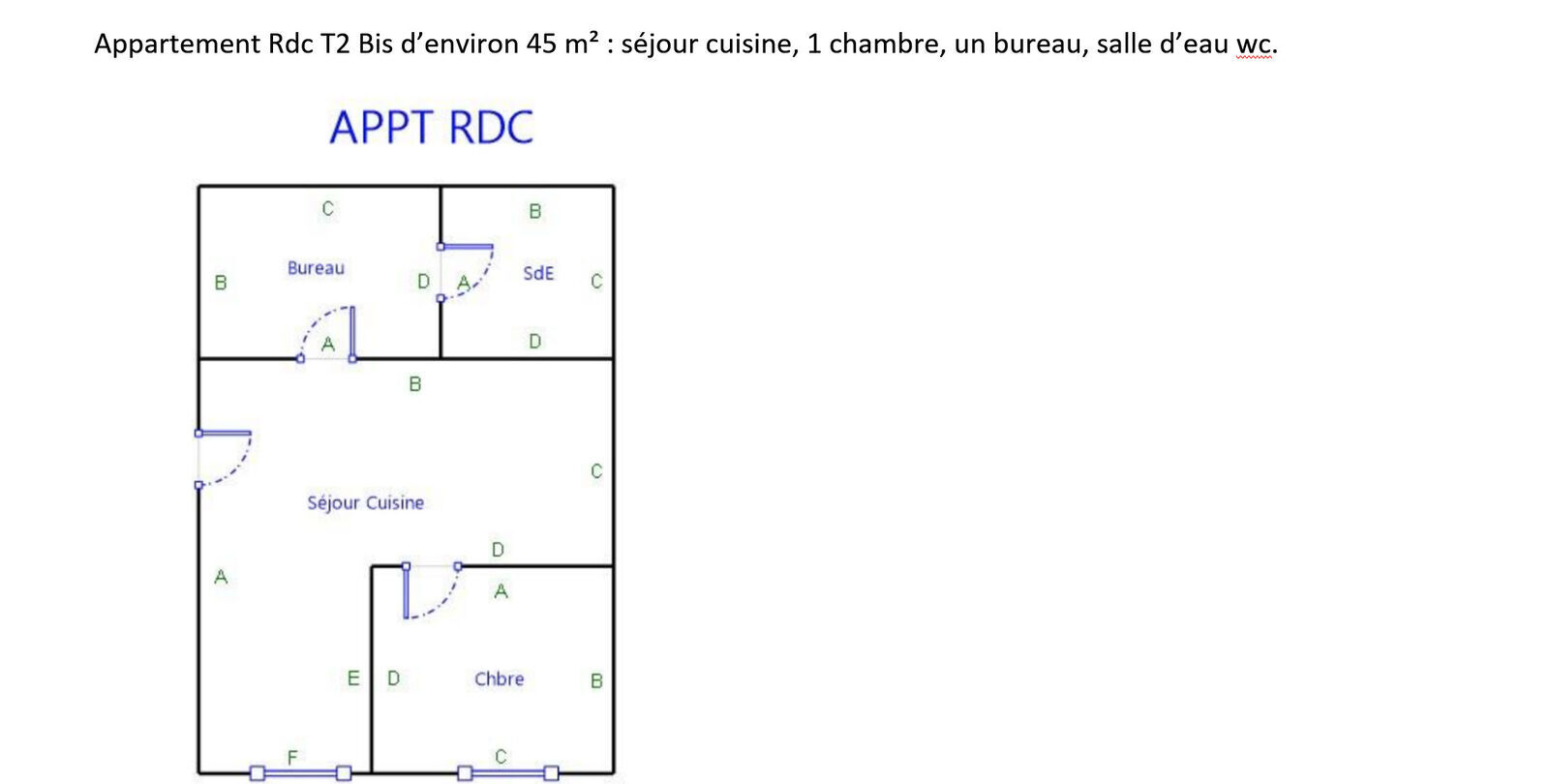 Rez-de-chaussée : T2 bis d’environ 45 m²