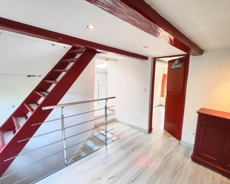 - au 1er étage : mezzanine bureau, 2 chambres, une salle de bain avec baignoire douche et wc
