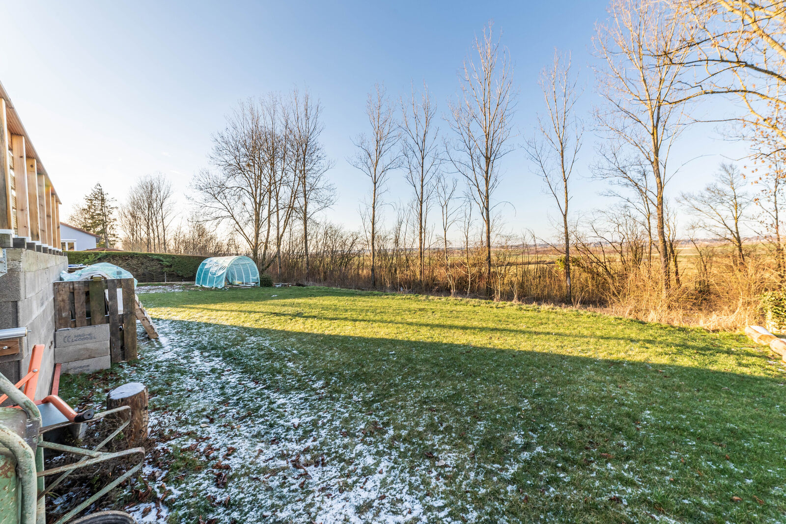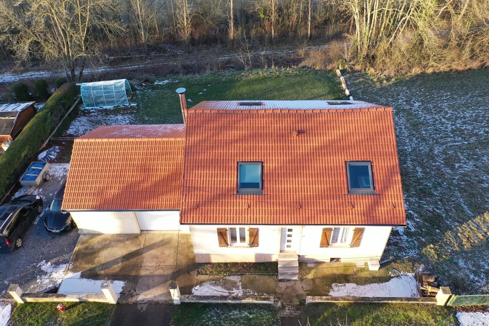 Pour ce qui est des extérieurs : il est composé d’un terrain relativement plat, attenant à l’habitation. Il est visible depuis la terrasse, elle-aussi réaménagée, dotée de son espace « relax ».