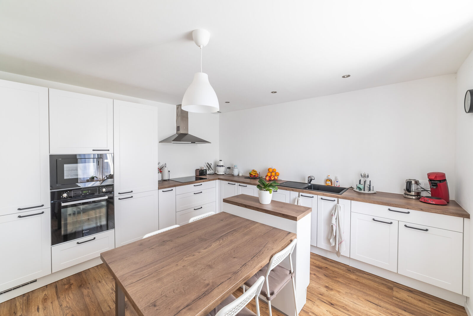 La cuisine équipée, séparée, de belle taille également, est pleinement fonctionnelle et moderne. Elle vous permettra de préparer de délicieux repas pour vos proches. Avec ses nombreux rangements, son plan de travail pratique, ainsi que son ilot central, vous pourrez cuisiner en toute simplicité.