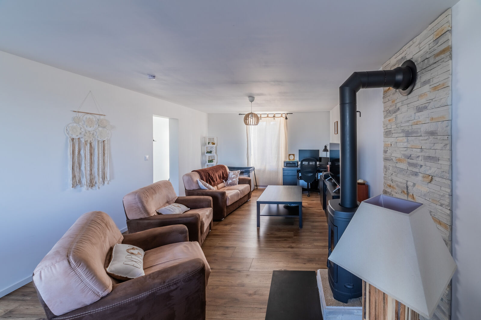 Vous serez happé par La pièce de vie spacieuse et lumineuse. Elle vous accueillera avec chaleur et convivialité. Vous pourrez profiter de moments de détente en famille ou entre amis dans cet espace confortablement aménagé, avec notamment, l'ajout d'un poêle à bois (Voir Photo).