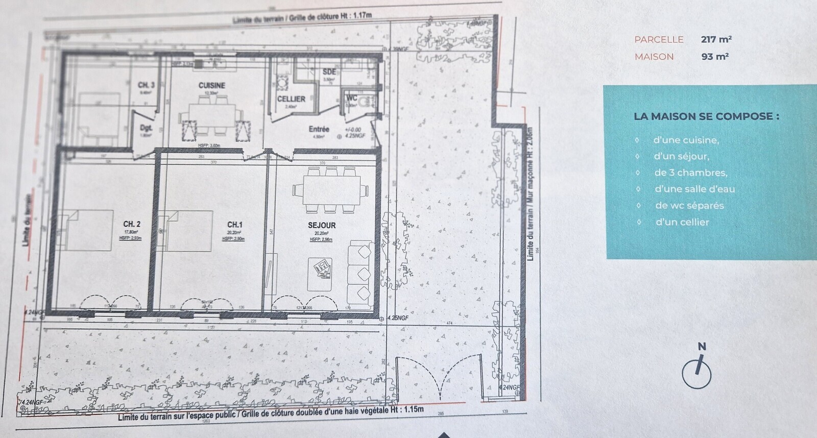De plain pied, avec une surface de 93 m2 sur une petite parcelle 220 m2 environ. Cette maison est composée d'un séjour, de 3 chambres, d'une cuisine, d'un cellier et d'une salle d'eau. Sur l'espace extérieur, il est possible d'avoir une terrasse + un espace de stationnement pour une voiture.