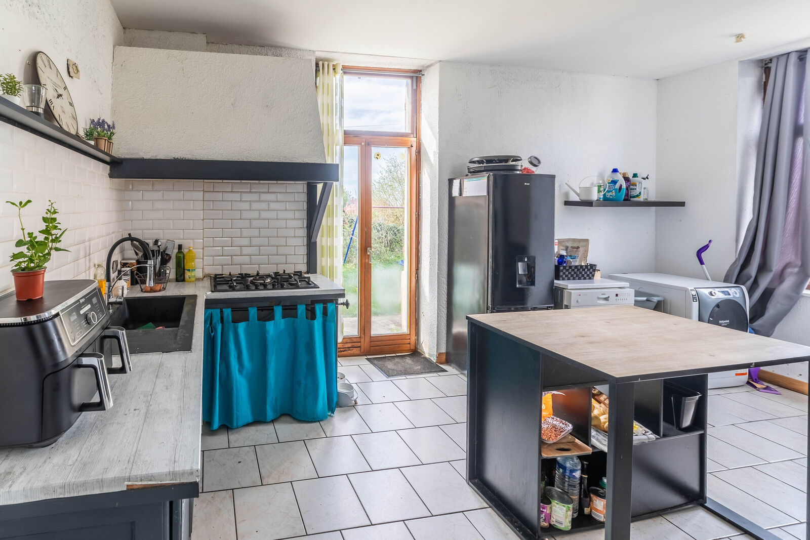 - La Cuisine, séparée, dotée d'un sympathique espace, avec accès direct sur les extérieurs et notamment sur un terrain enherbé, clôturé, exposé Sud,