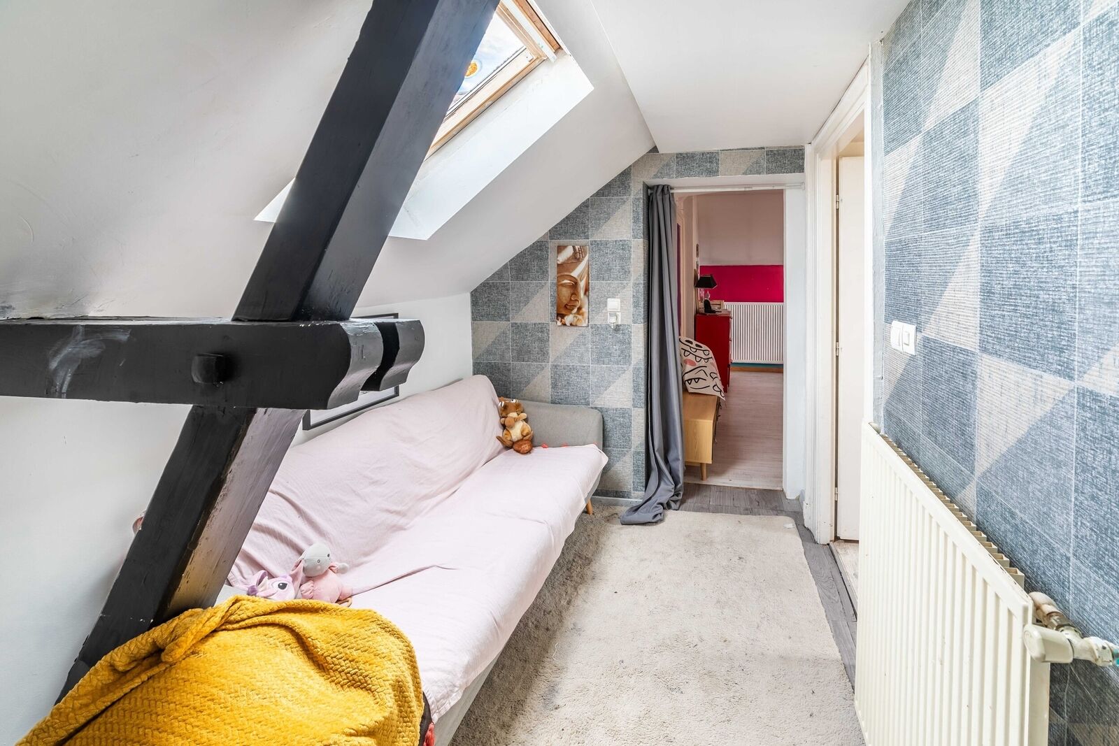 A l'étage, nous notons également la présence d'un couloir, permettant d'accéder aux 3 Chambres présentes dans cette maison, ainsi que vers la Salle de Bain.