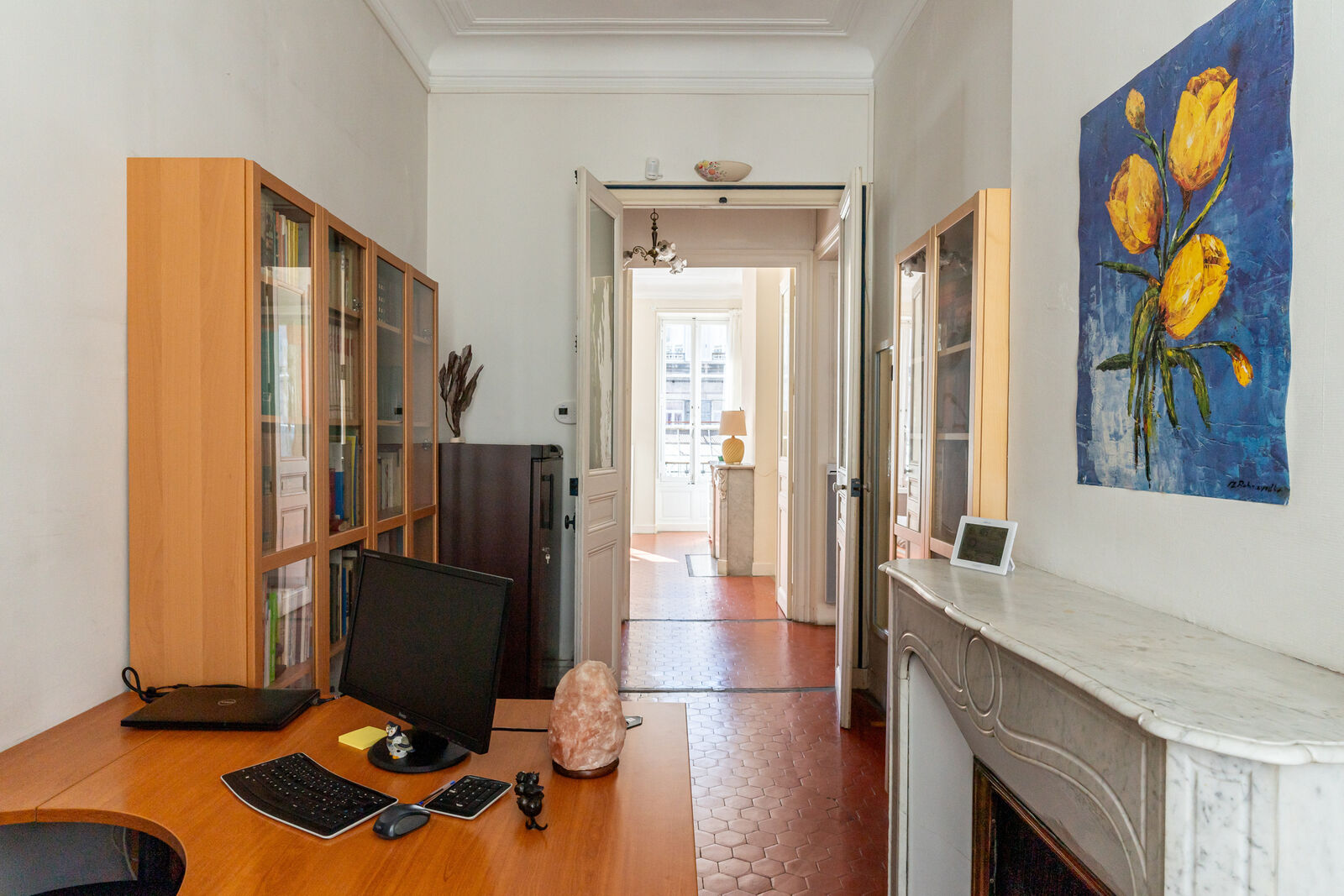 Baigné de lumière et au grand calme, l'appartement s'articule autour d'un large dégagement qui dessert trois chambres spacieuses dont une avec dressing et un beau séjour. Au bout du dégagement, on découvre la cuisine individuelle sur mesure, un bureau fonctionnel, une salle d'eau et WC indépendant.