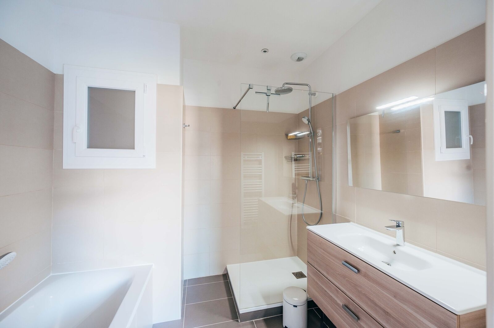 Ce bel appartement de plain-pied aux volumes généreux et à l'excellente note énergétique, a été rénové entièrement en 2020 avec de belles prestations, telles que du parquet en point de Hongrie, de la climatisation, des radiateurs connectés, des fenêtres double vitrage Finstral, une isolation phonique mur et plafond.