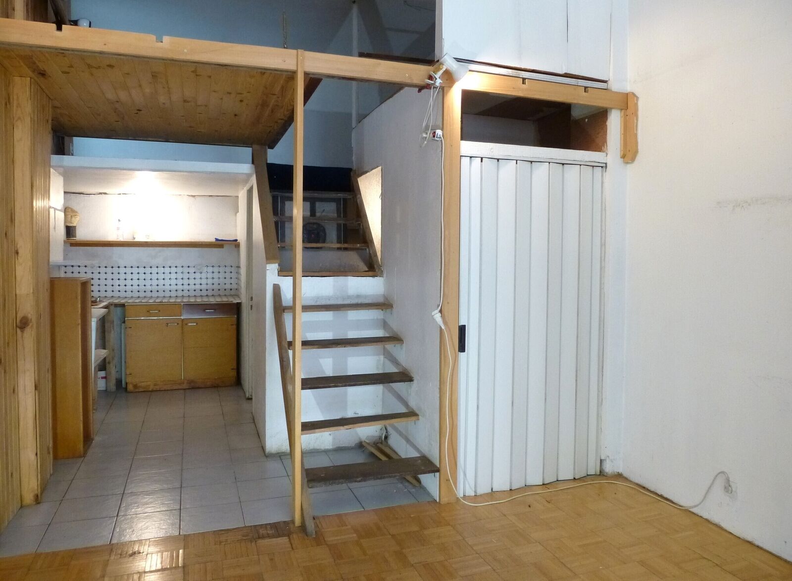 Ce bien atypique, composé d'une pièce principale + partie privative (cuisine ouverte, salle de bains -wc) + mezzanine, offre diverses possibilités d’aménagement grâce à ses volumes ouverts.