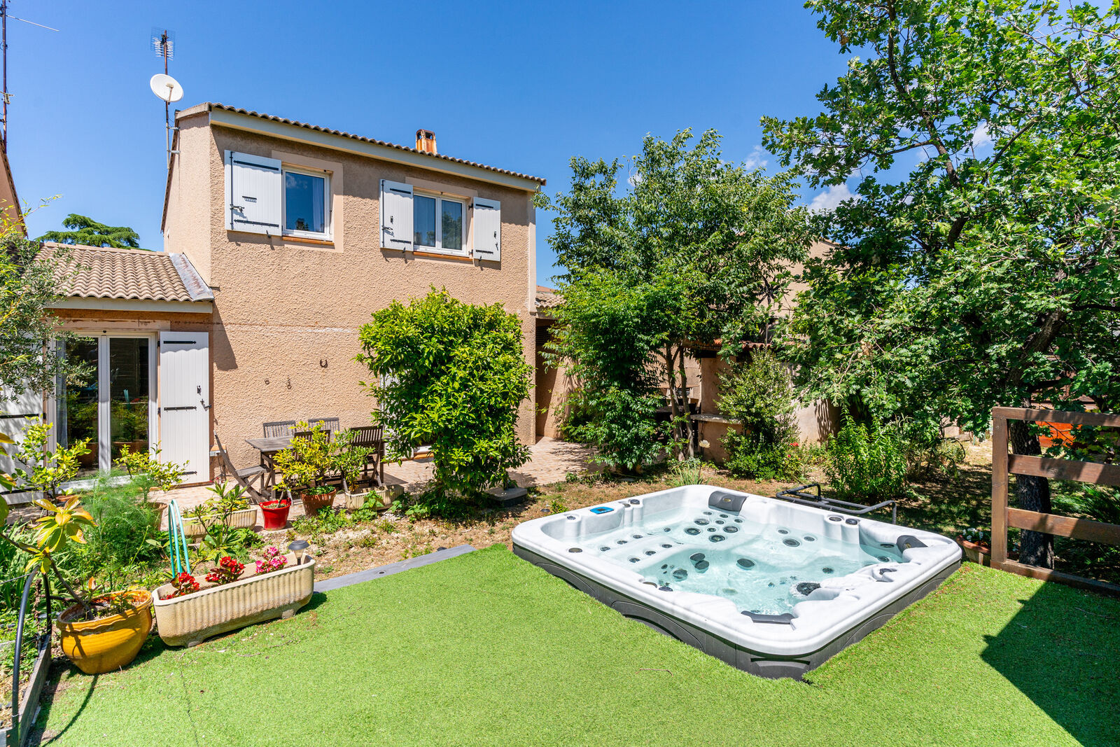 Nichée dans un lotissement résidentiel, au calme, une jolie maison familiale en duplex, exposée plein sud avec un beau jardin verdoyant d'environ 300m2 qui abrite un jacuzzi à utiliser sans modération, en été comme en hiver.