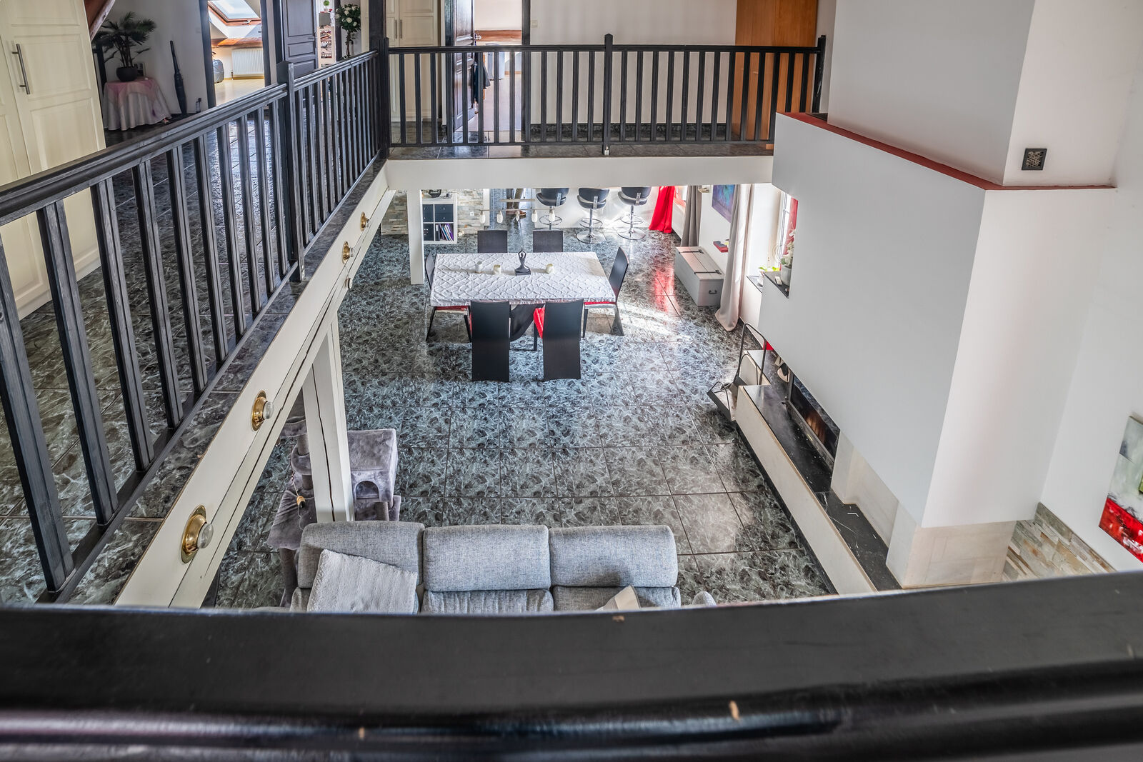 👀 Cette pièce à vivre présente un beau cachet, notamment, grâce à la visualisation de sa 🪵 cheminée, mais également, à la vue de la Mezzanine qui la surplombe.