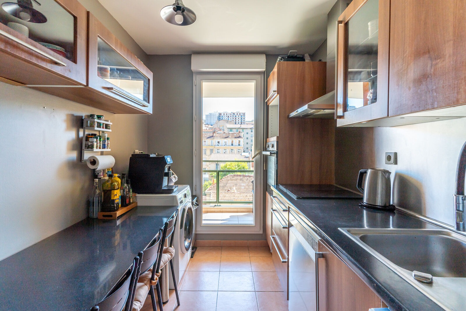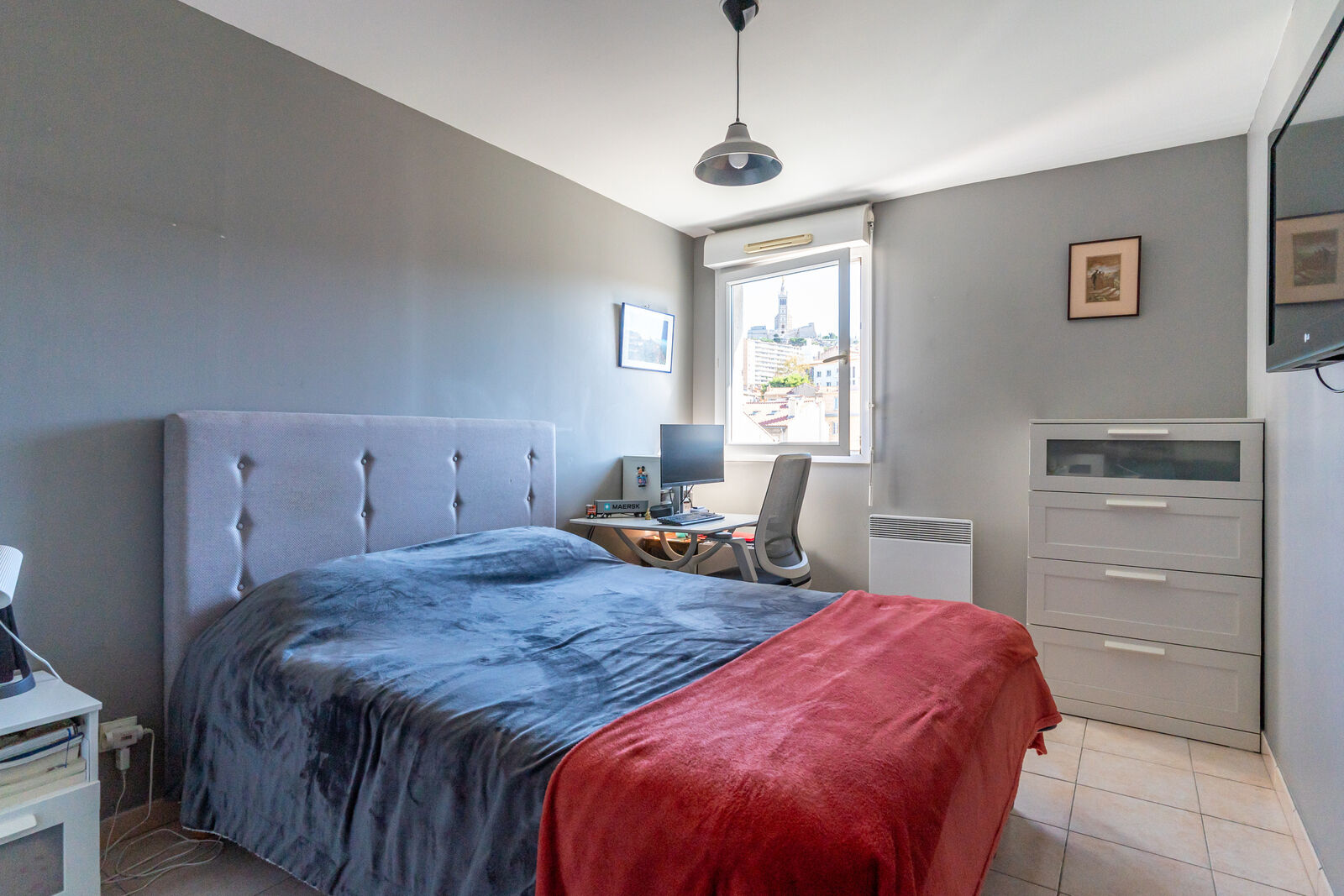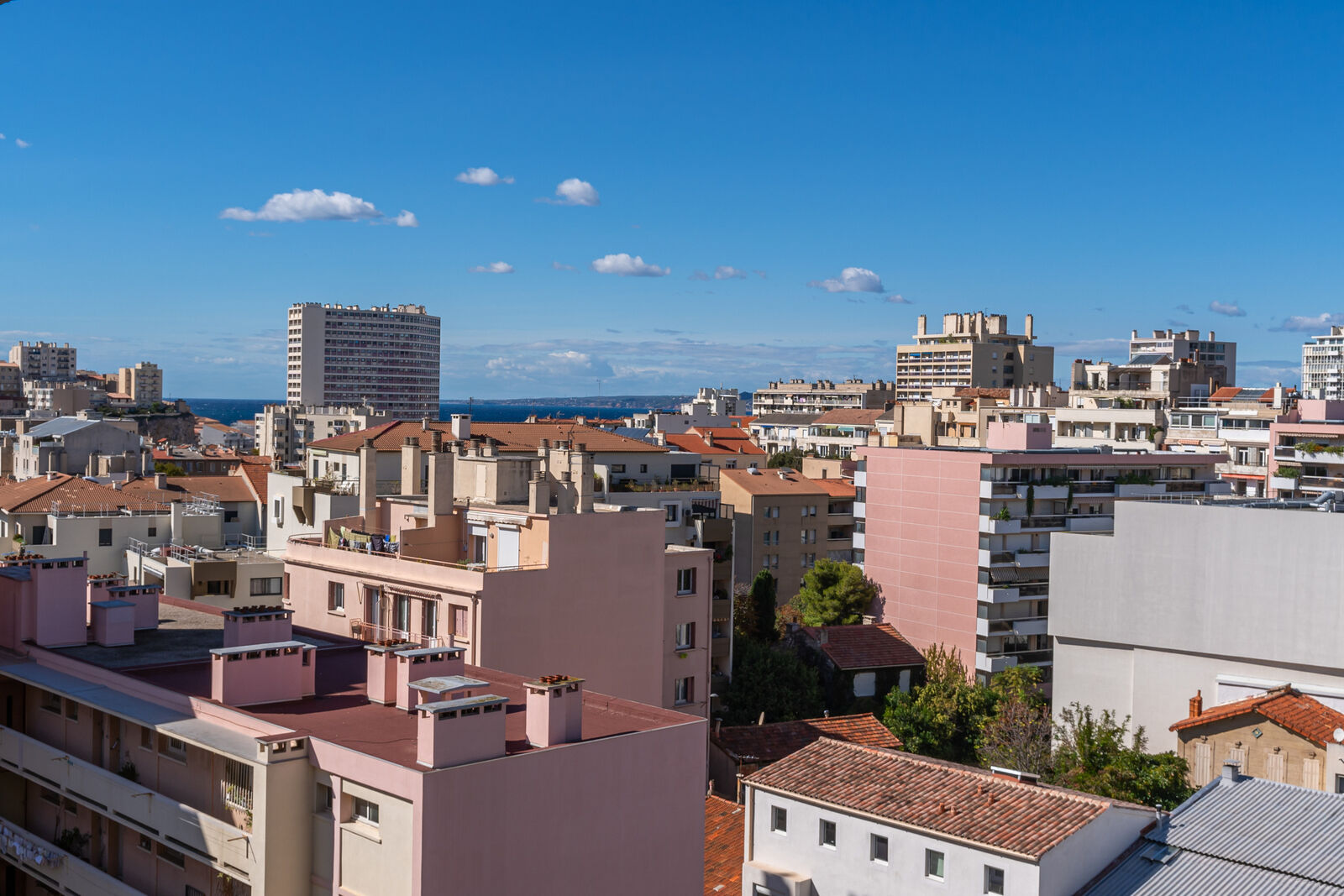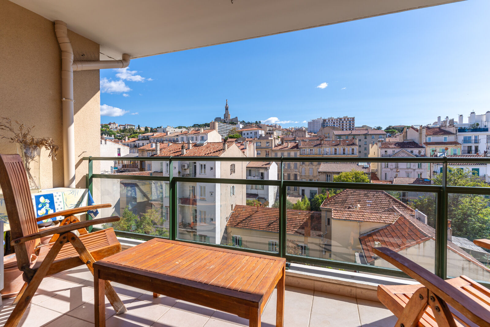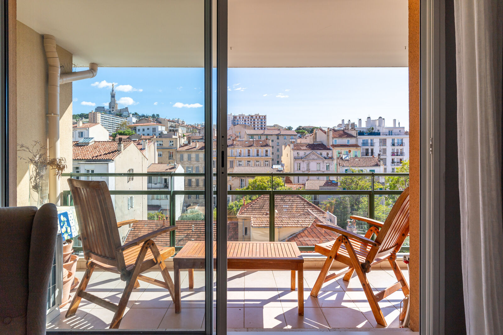 Cet appartement lumineux se compose d'un double living spacieux ainsi qu'une cuisine individuelle aménagée. L'ensemble donne sur une belle terrasse au calme, sans vis à vis, de 10m2 avec une vue imprenable sur les toits de Marseille et la Bonne Mère.