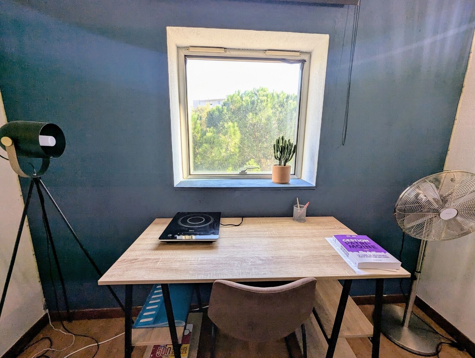 Toutes les commodités à proximité immédiate : tramway, restaurants, esplanade de l'Europe, le lez, facultés des sciences économiques, laposte, boulangerie.