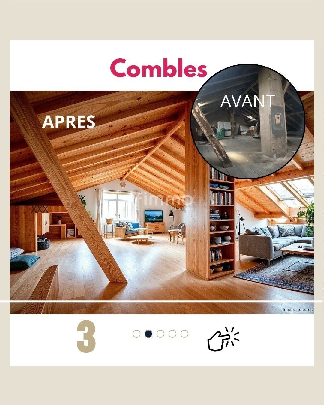 Il proposait : 3 chambres spacieuses, un grenier privatif de 93 m² de surface au sol (lot distinct), avec un fort potentiel d’évolution : duplex ou création d’un second appartement,