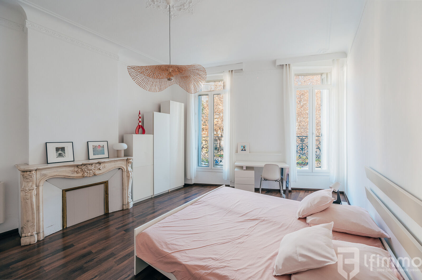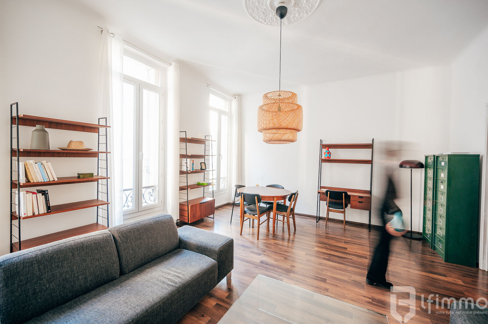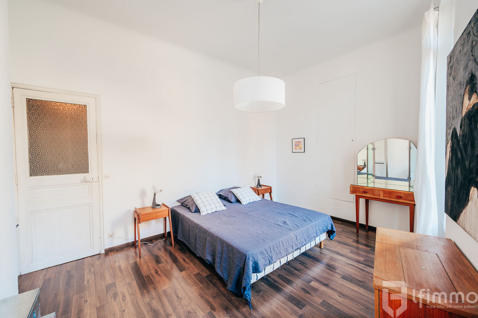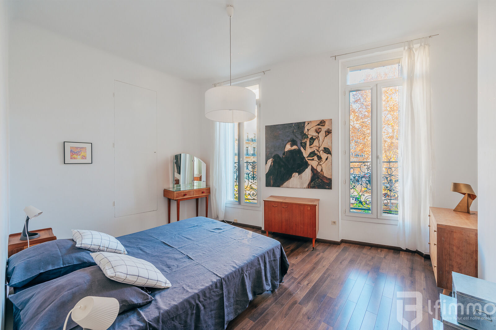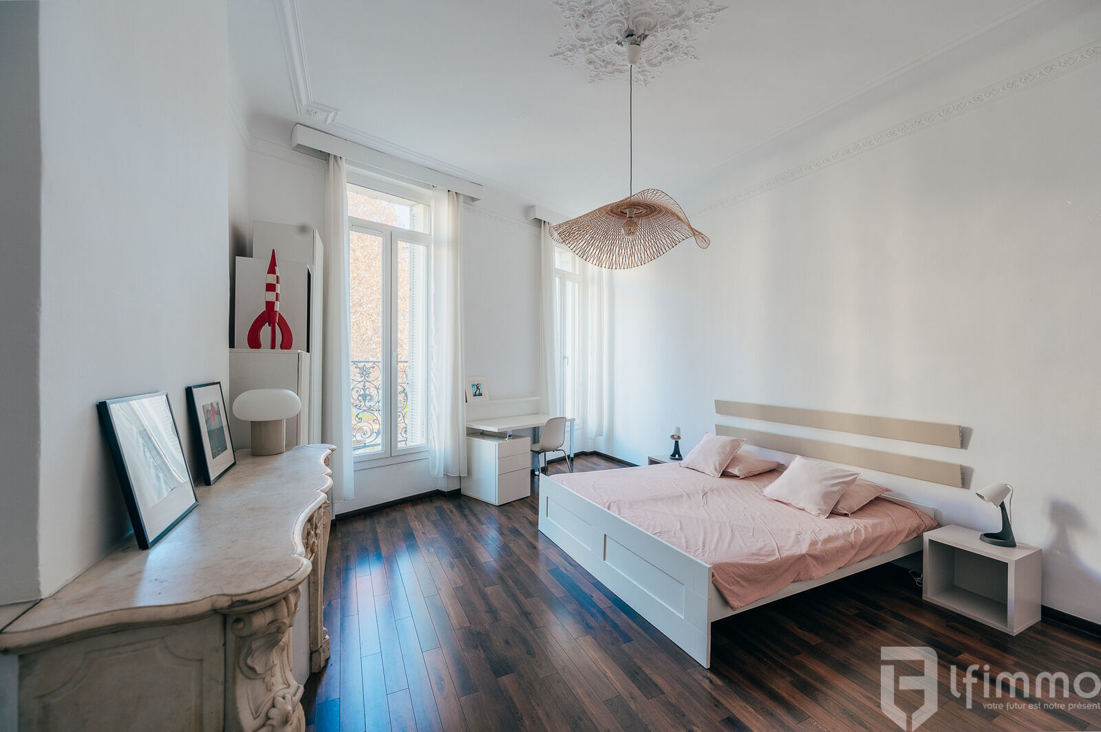 Cet appartement, qui ne nécessite aucun travaux, doté d'une belle hauteur sous plafond de 3,30m, respire le charme de l'ancien avec une touche de modernité grâce à une décoration soignée, des moulures décoratives et du parquet au sol.