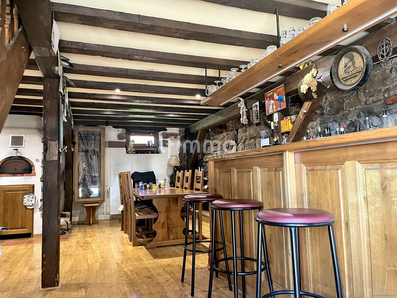 une cuisine équipée avec bar et four à pizza