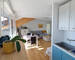 Le cœur de l'appartement et sa pièce de vie de 27 m² exposée sud, ainsi que la cuisine équipée ouverte, séduit par sa luminosité et ses deux portes-fenêtres donnant immédiatement accès à la terrasse de 14 m², son salon de jardin et sa vue dégagée, idéale pour des moments de détente ou des repas en extérieur.