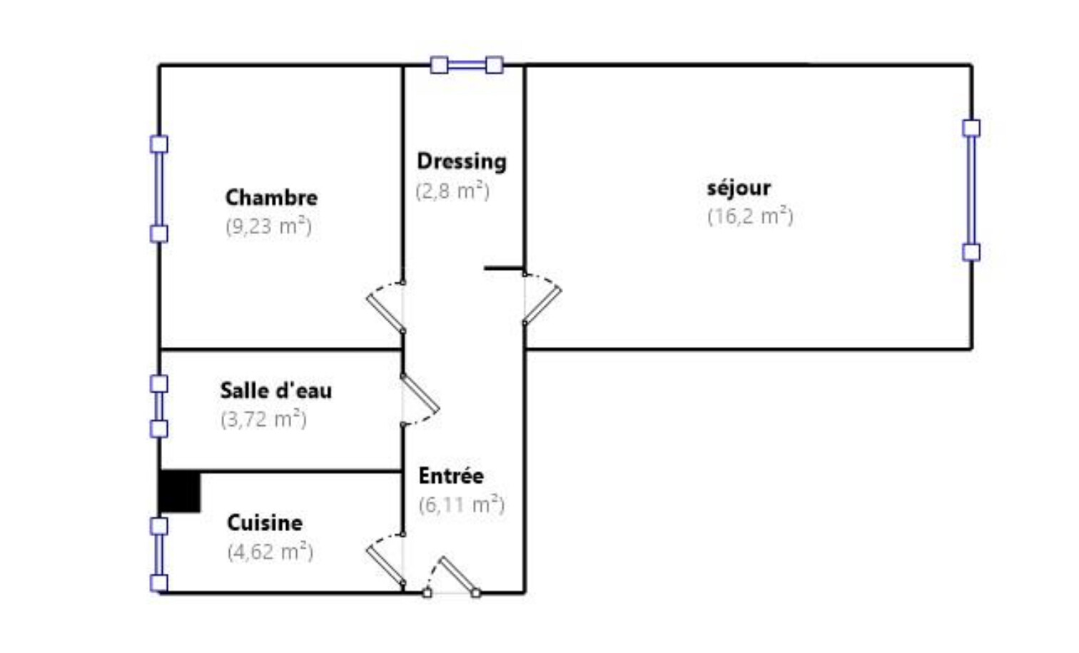 Très lumineux car en double exposition, Il se compose d'une entrée desservant un Salon exposé Est, une Cuisine séparée aménagée, une Salle d'eau avec WC refaite récemment, une Chambre, un Dressing avec fenêtre (servant actuellement de bureau).