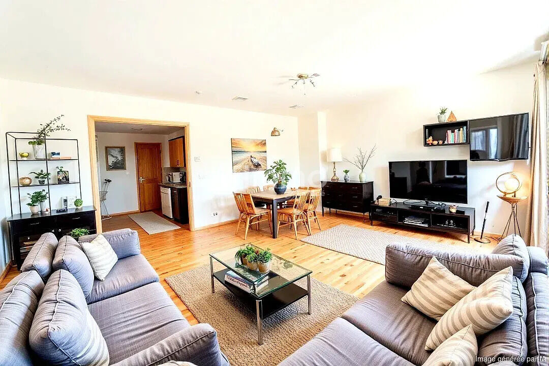 Vous avez la possibilité d'enlever la cloison entre le séjour/salon et la cuisine ; ce qui vous apportera d'autant plus de luminosité et une pièce de vie de 40m2.