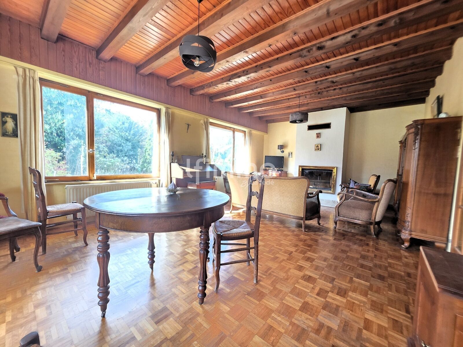 Le sous-sol est complet et fonctionnel : garage double côte à côte, cave, buanderie avec accès jardin, chaufferie avec stockage bois, et une ancienne salle de jeux. De quoi répondre à tous les besoins de rangement, de bricolage ou d’activités.