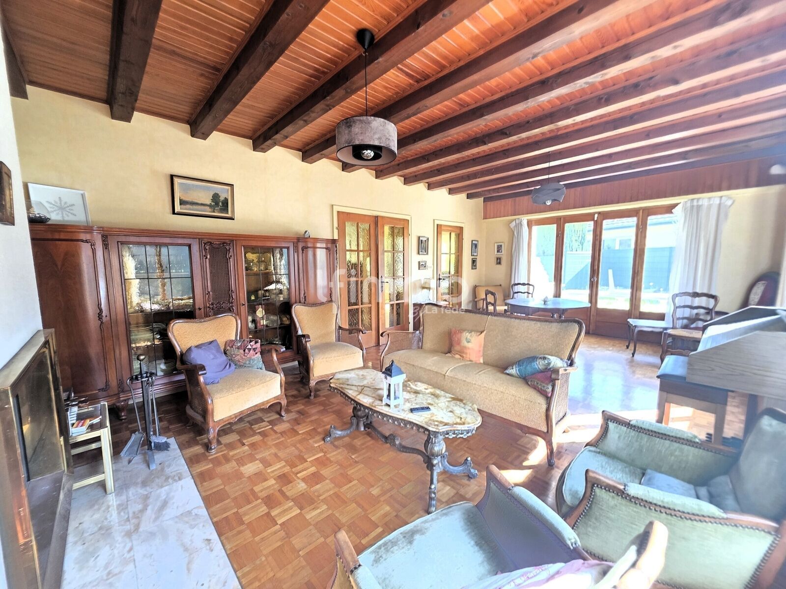 Côté agencement, l’entrée spacieuse dessert une cuisine équipée semi-ouverte, ainsi qu’un grand salon/séjour lumineux avec cheminée et accès direct à la terrasse. La circulation est fluide, les volumes sont agréables.