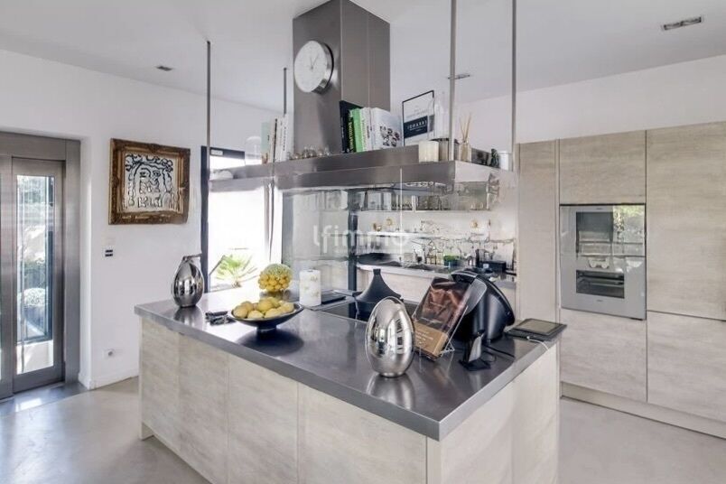 Le premier étage accueille une cuisine dînatoire ouverte sur une double réception séjour/salle à manger desservant un salon design accédant à une grande terrasse arborée avec soin et exposée plein sud.