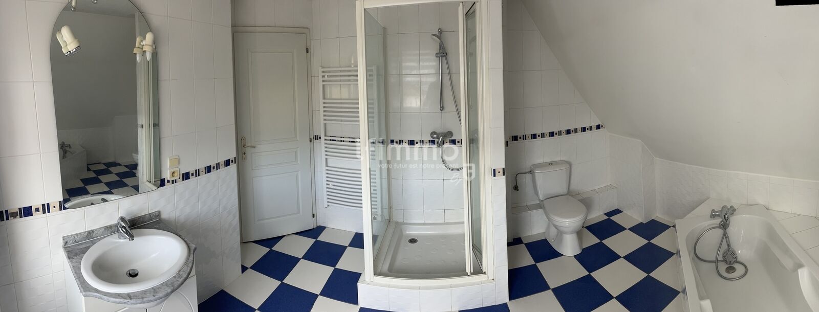 Au 1er étage : 3 chambres, une salle de bain avec vasque, baignoire, douche, wc et sèche serviette.