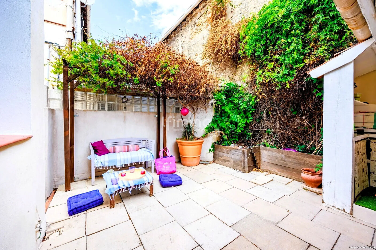 La maison s’ouvre sur une cour intérieure agréable, avec une entrée piétonne indépendante. Un grand atelier complète le bien, avec arrivée d’eau, espace buanderie.