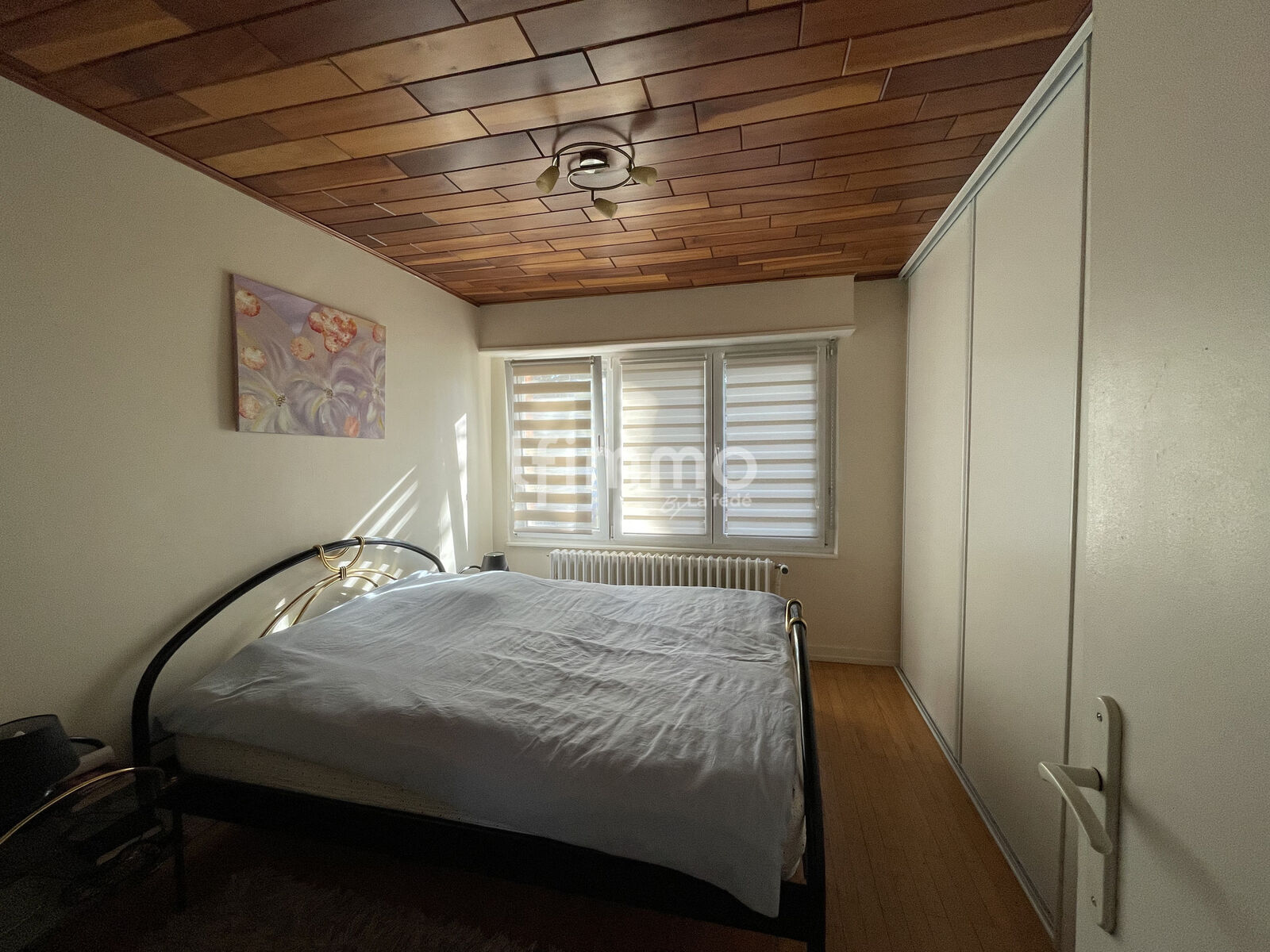 avec cheminée et accès à une très belle terrasse orientée sud, deux chambres à coucher, salle de bain avec baignoire balnéo et WC.
