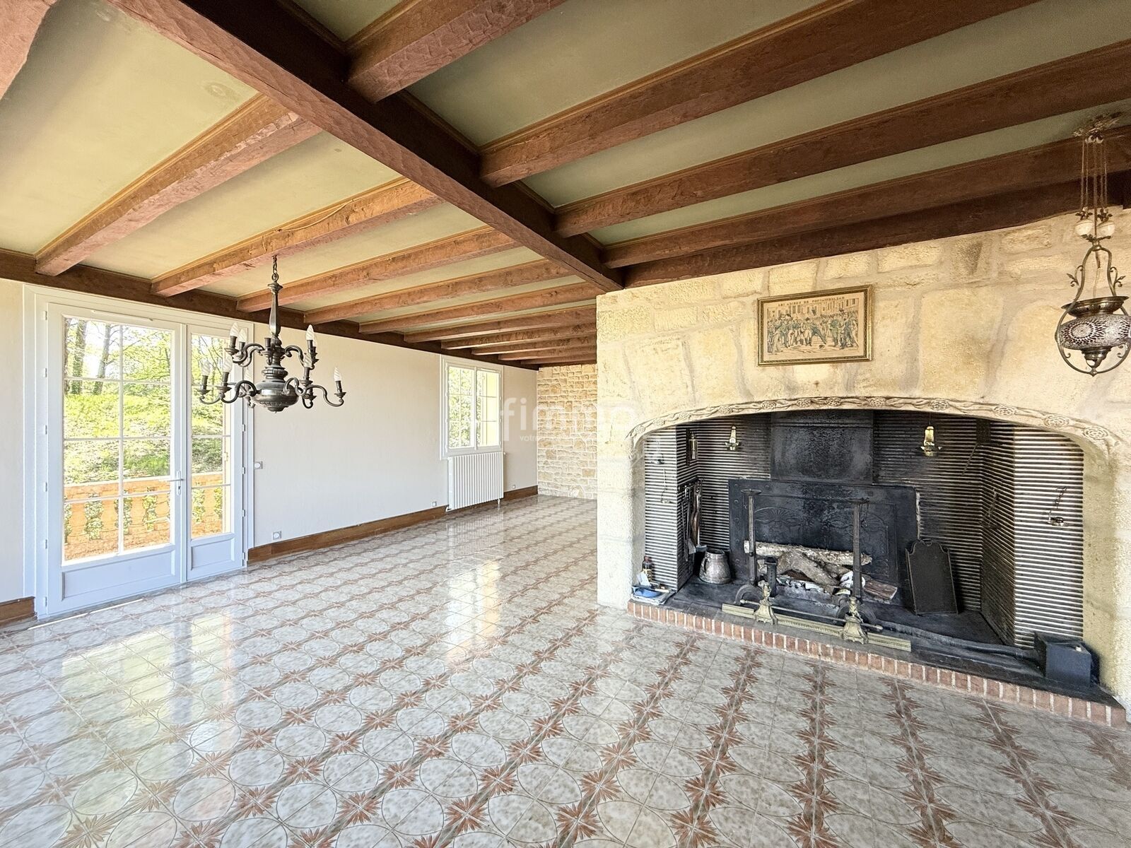 Petit descriptif rapide de la maison : hall d’entrée, bureau, grand salon / salle à manger avec cheminée de château, cuisine équipée, arrière-cuisine,