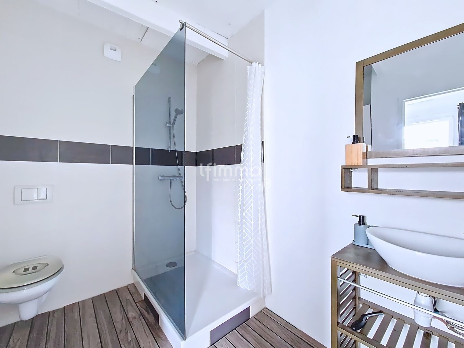 1er étage : chambre d’environ 15 m² exposée sud, salle d’eau attenante avec WC suspendu.