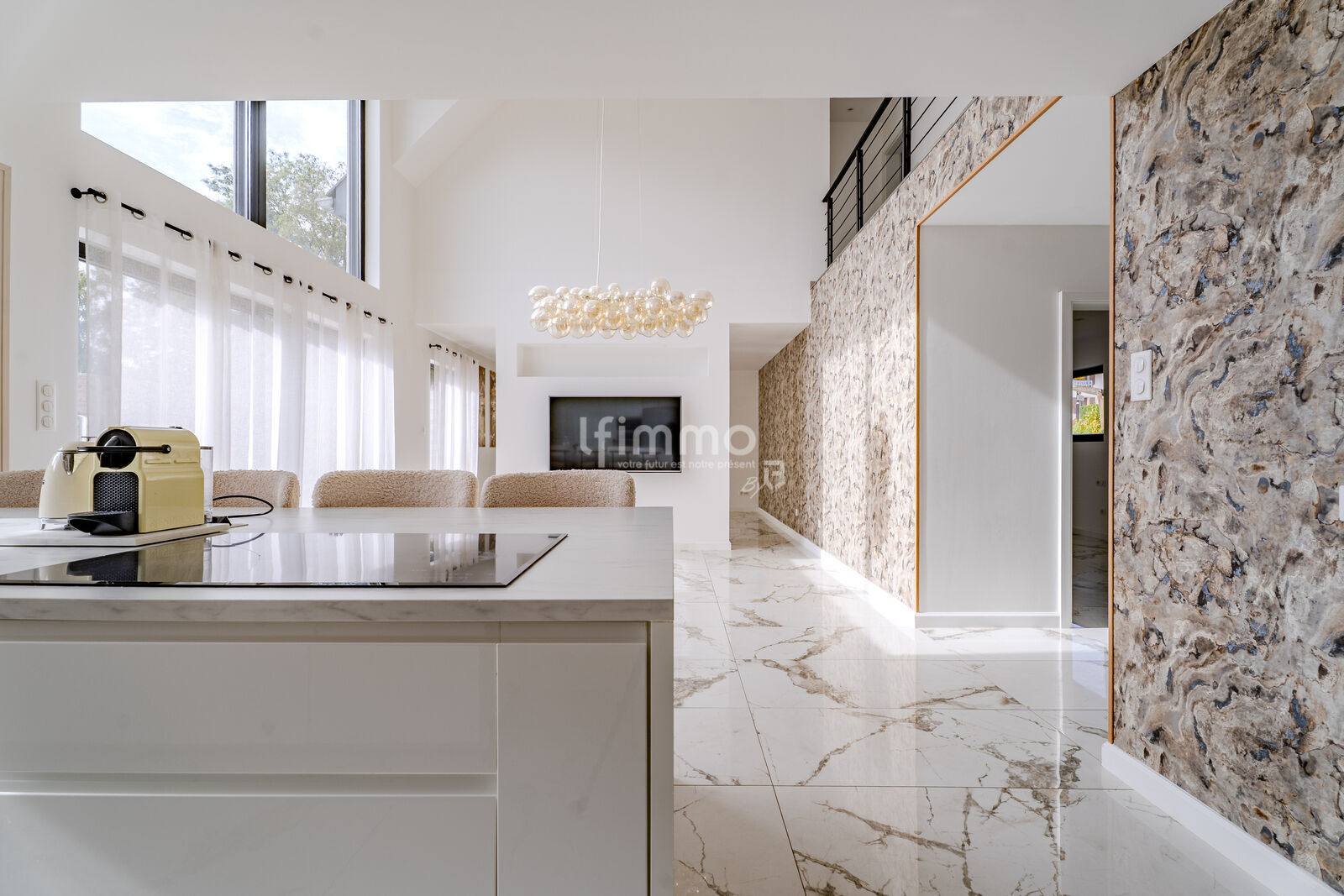 Au rez-de-chaussée, une belle entrée, suivie d’un salon/salle à manger très lumineux ouvert sur la cuisine entièrement équipée.
