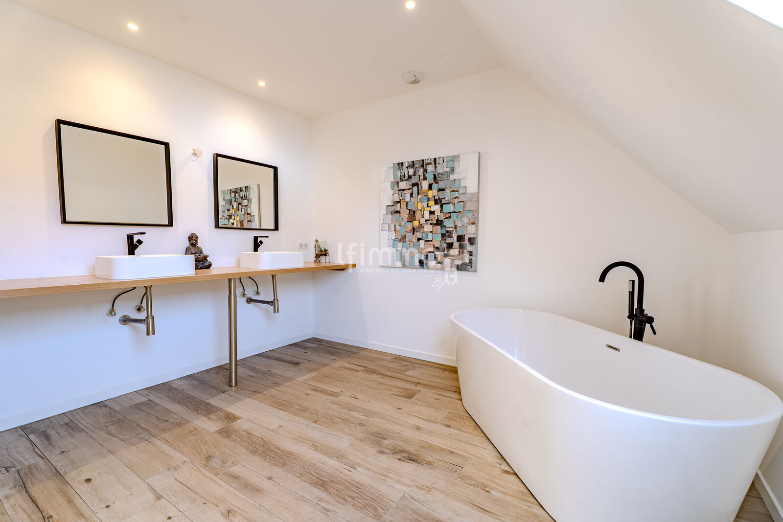 À l’étage, vous trouverez une belle mezzanine de plus de 16m², 2 belles chambres d'environs 12m² et 14m² ainsi qu’une grande salle de bains avec baignoire et douche à l'italienne, et un toilette séparé.