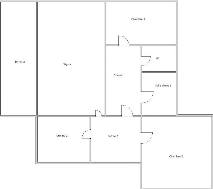 Au rez-de-chaussée, avec entrée individuelle, un appartement de type F2 d’environ 51m² avec une cuisine ouverte sur la pièce de vie, une chambre, un bureau, une salle d’eau, un wc indépendant.