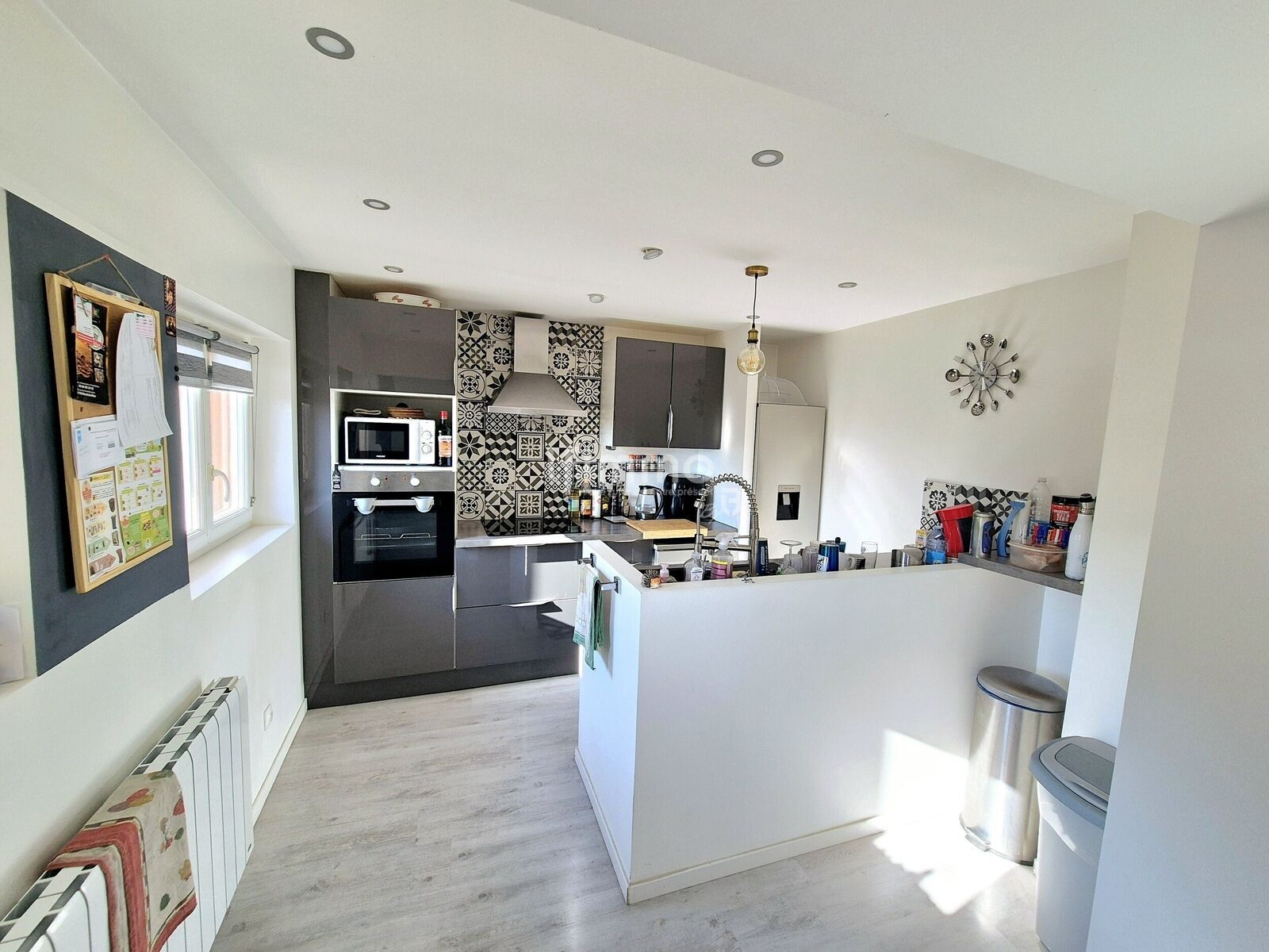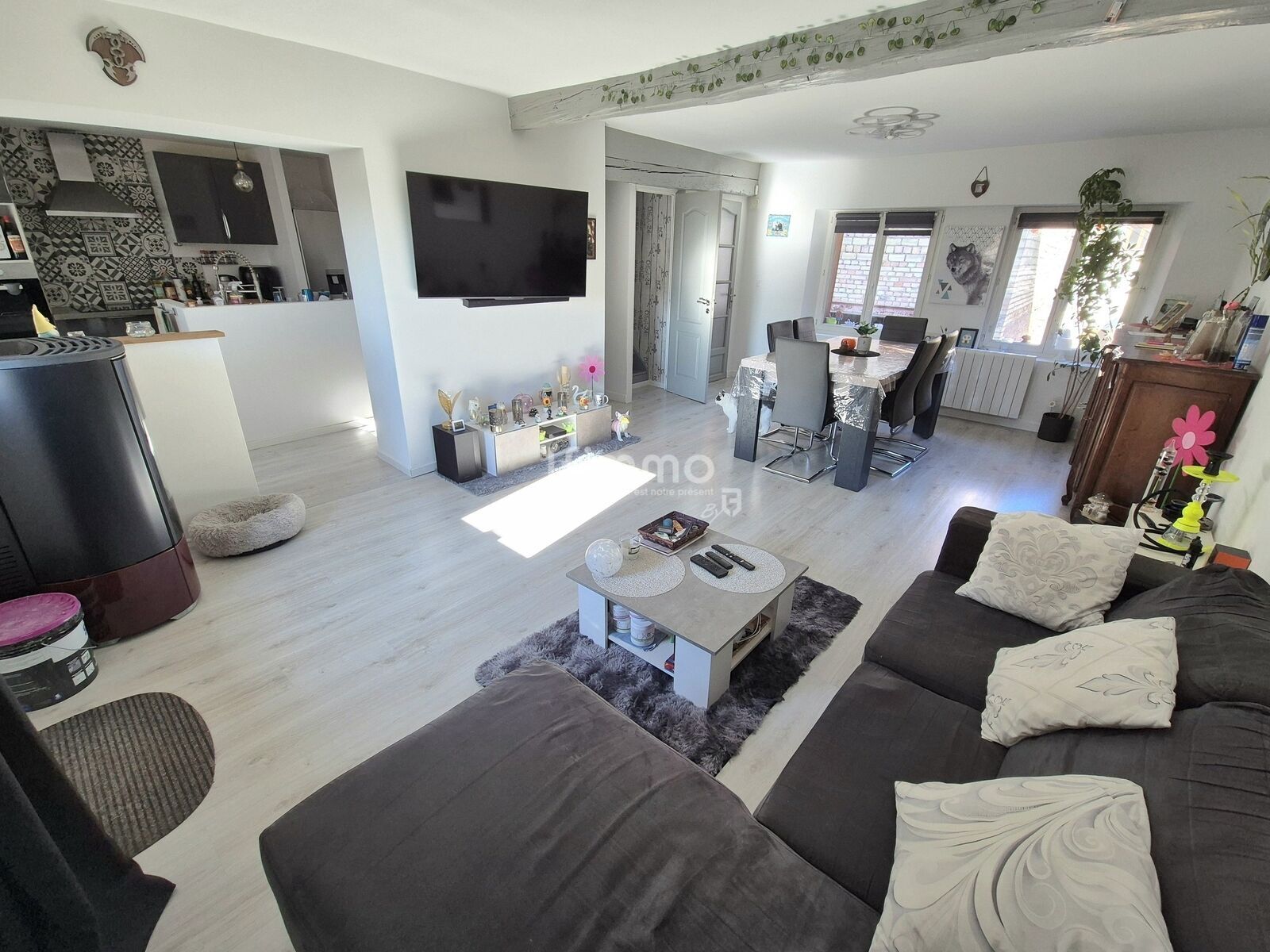 La maison est équipée de fenêtres double vitrage en pvc, de radiateurs électriques, d'un poêle à granules et d'une isolation intérieure.
