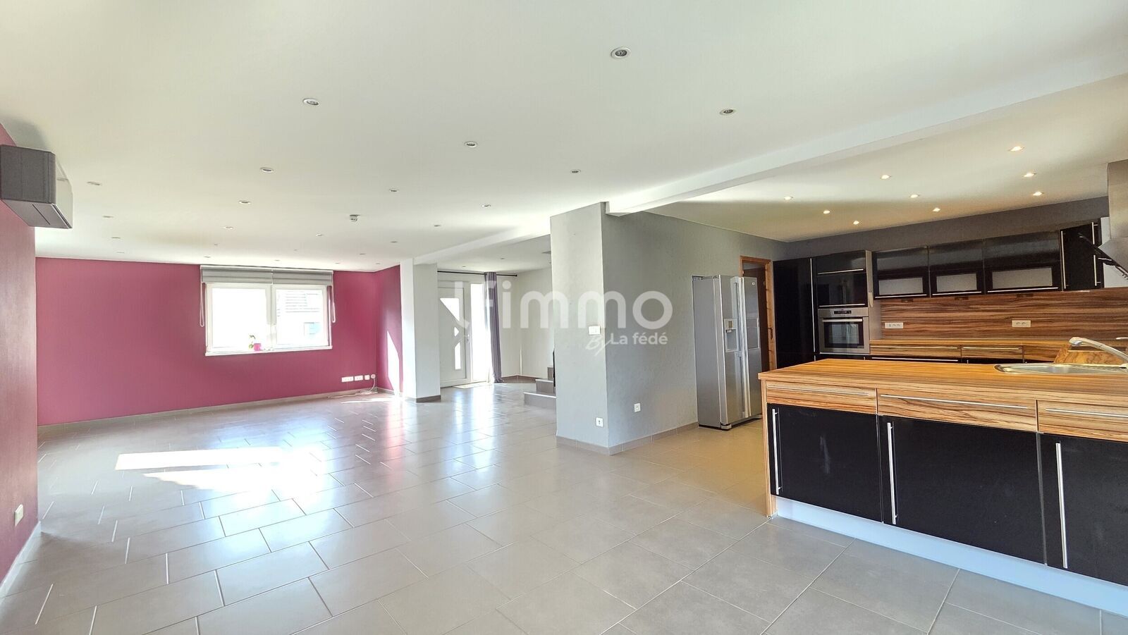 • Espace de vie (+60 m²) : Une pièce maîtresse baignée de lumière avec cuisine équipée et cheminée à insert.
