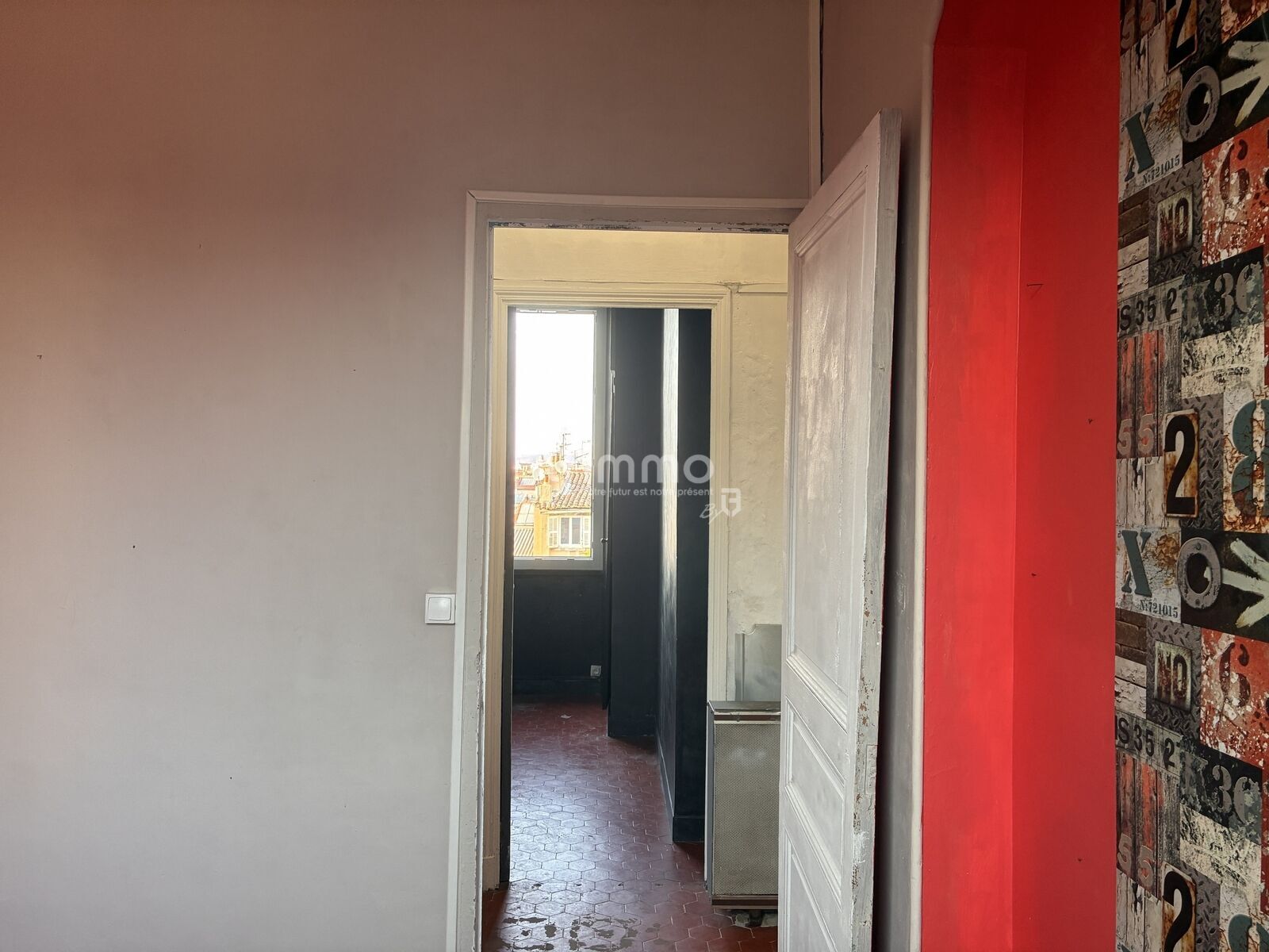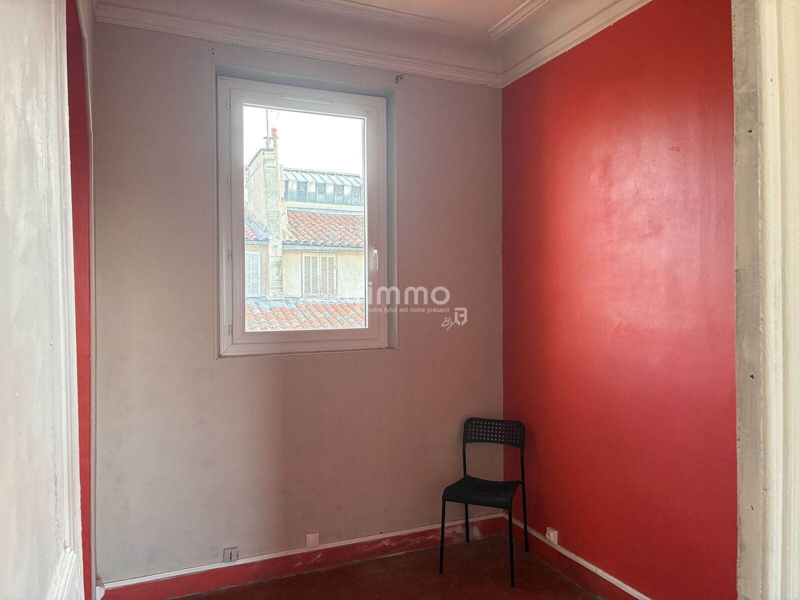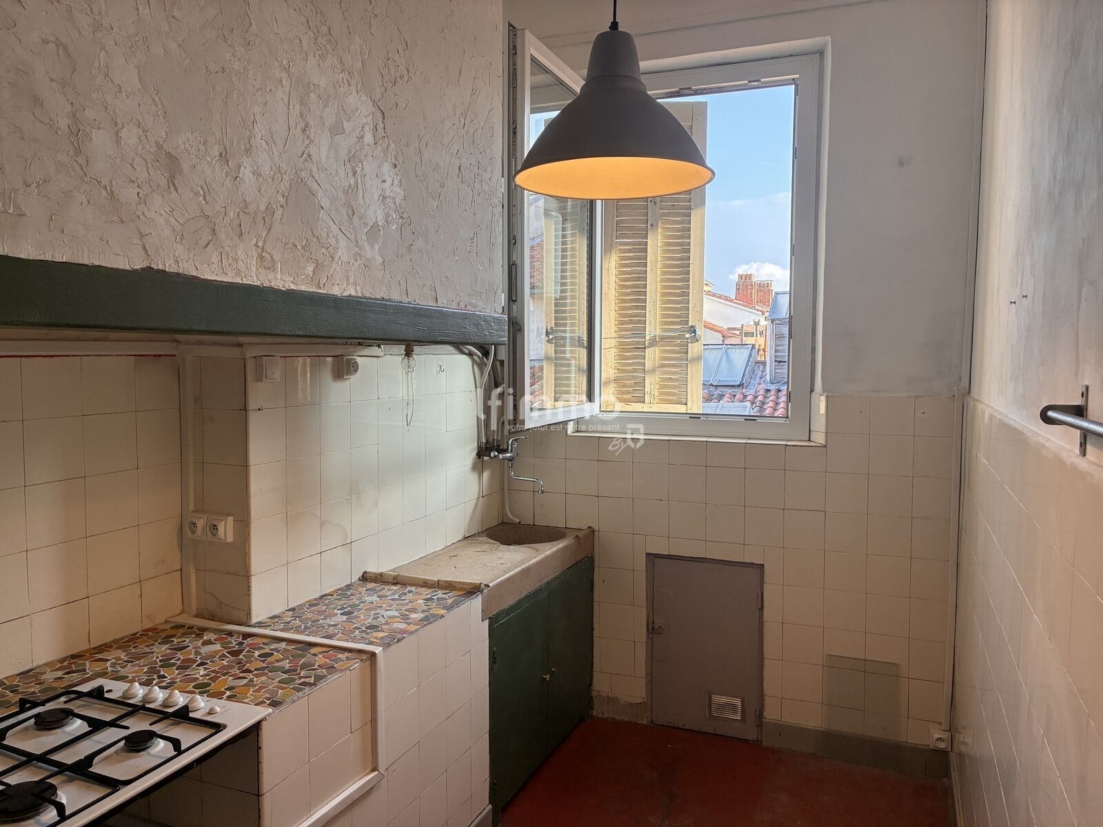 Une belle pièce à vivre avec tomettes et cheminée en marbre allie le cachet de l’ancien et une belle hauteur sous plafond de 3,10m. Lumineuse et au calme le plus total cette pièce donne sur la cour intérieure avec vue dégagée sur les toits et au loin sur le clocher des Accoules et la Tour La Marseillaise.