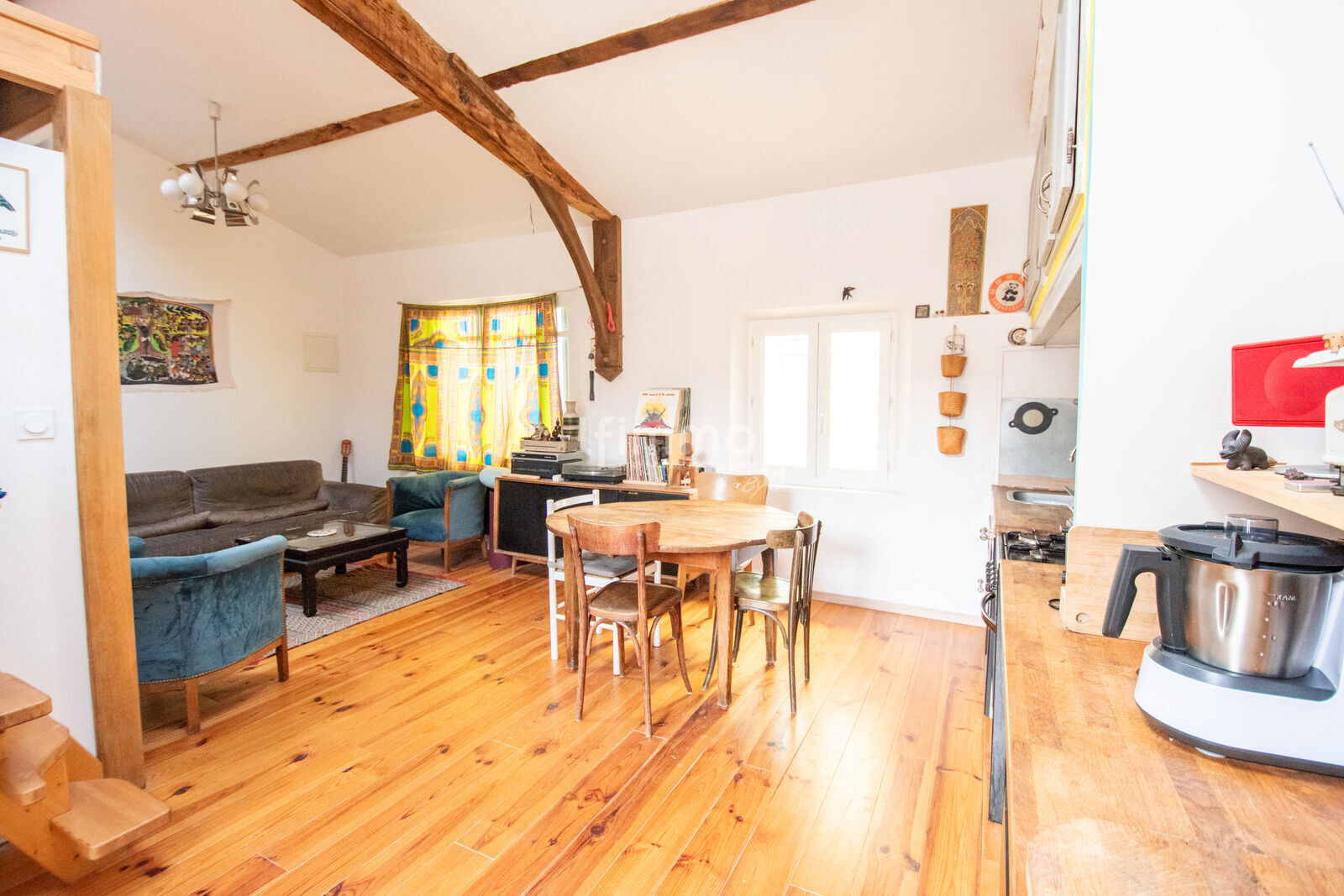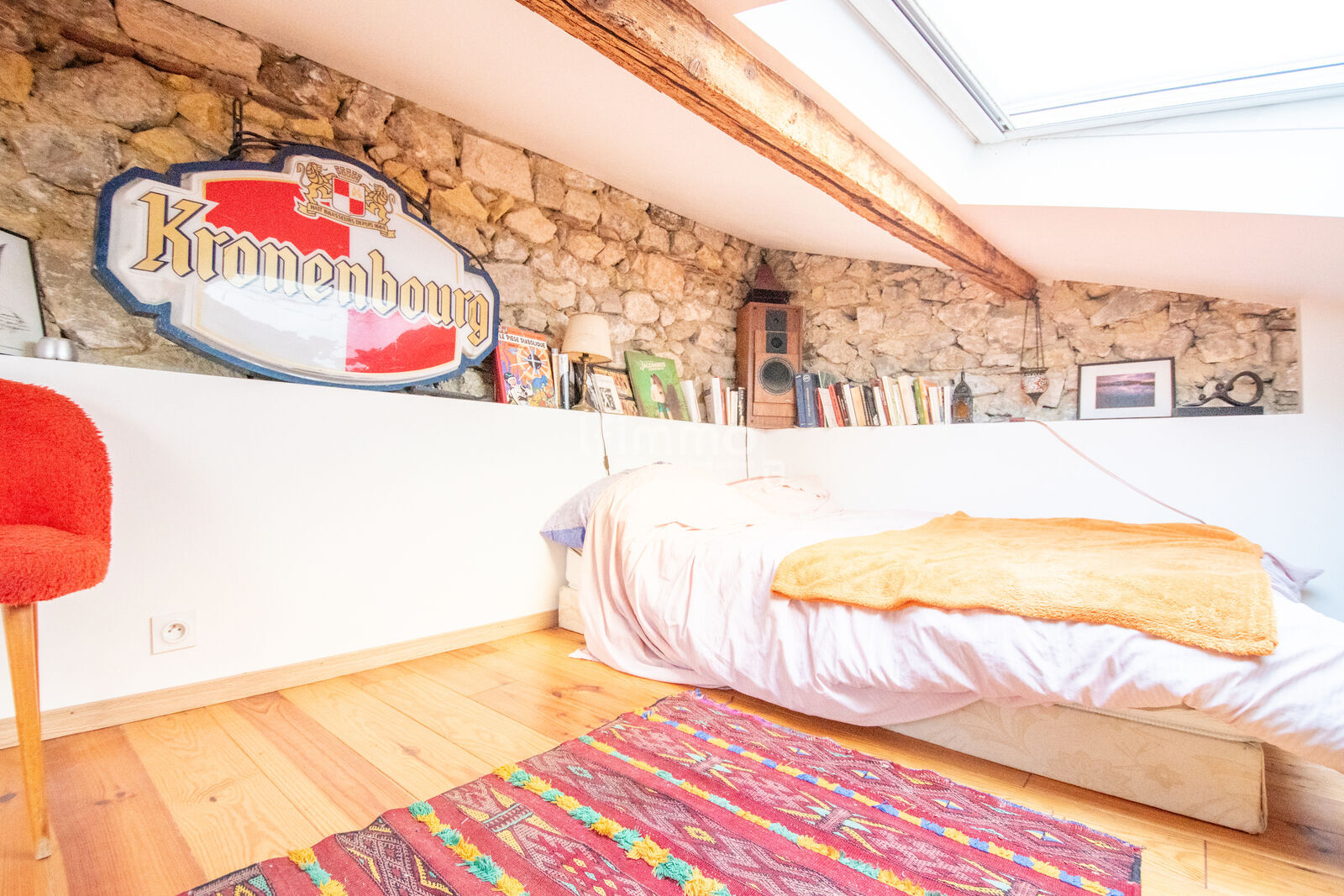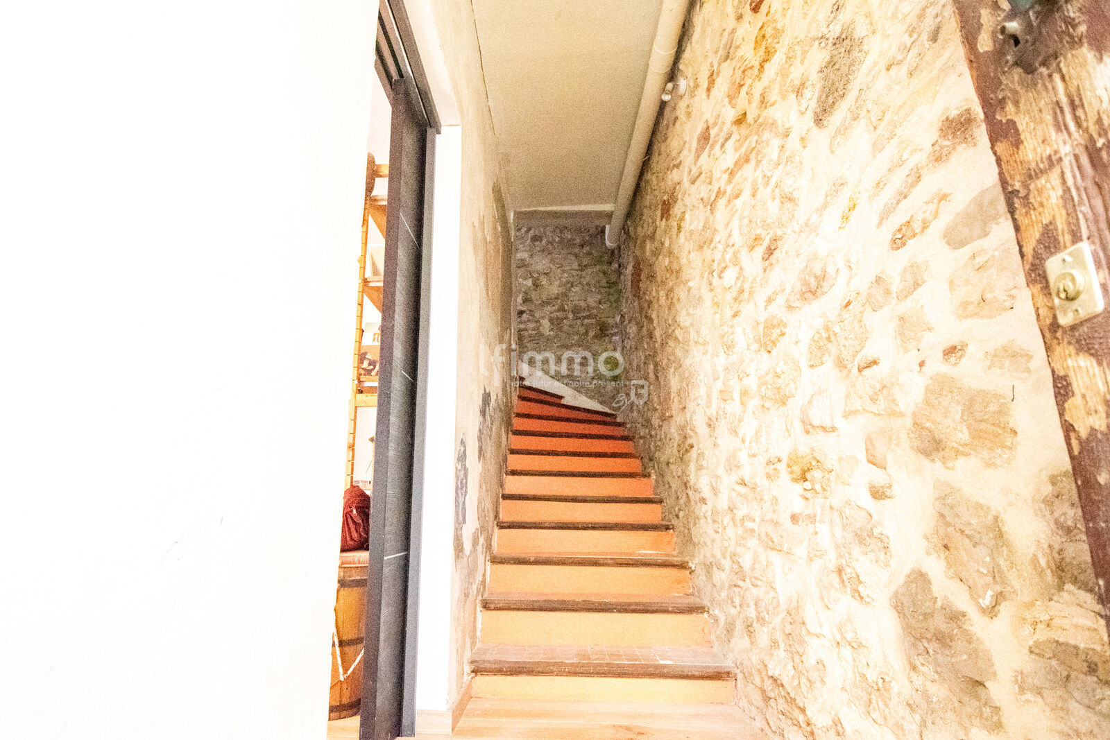 Vous serez séduit par les pierres apparentes d’origine qui ornent les murs de l’escalier, apportant charme et authenticité à l’ensemble.