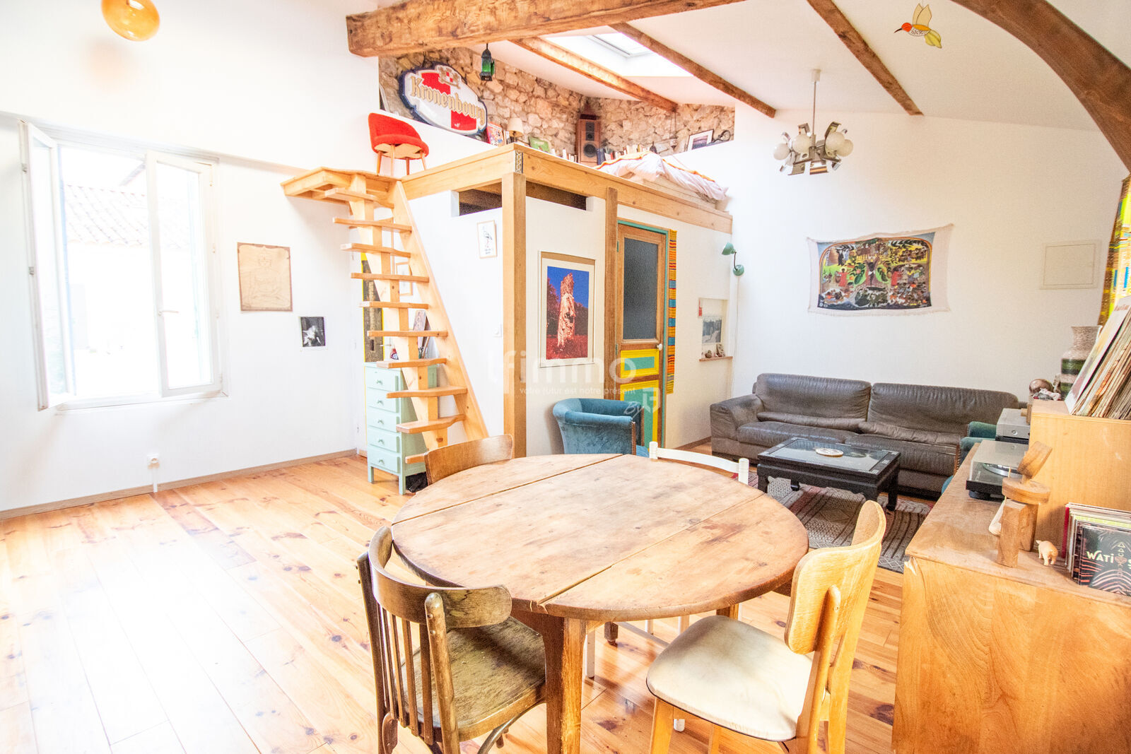 Enfin, une mezzanine d’environ 7 m² complète l’ensemble, pouvant servir de chambre d’appoint, d'espace bureau, de rangement complémentaire.