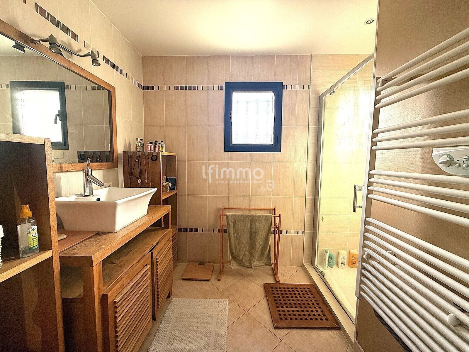 Implantée sur une parcelle de 1500 m2 avec piscine, elle est composée d'une entrée, d'un séjour de 30 m2 avec un poêle à bois, une cuisine ouverte de 9 m2 avec buanderie adjacente, 4 chambres de 10 à 15 m2, un grand bureau en mezzanine de 25 m2, 2 salles d'eau, 2 wc et une cave à vins. Elle est complétée par un double garage avec rochelle de 40 m2, un atelier et un abri de jardin. La piscine vient tout récemment d'être rénovée et est entourée d'une grande terrasse dont une partie couverte par une pergola.