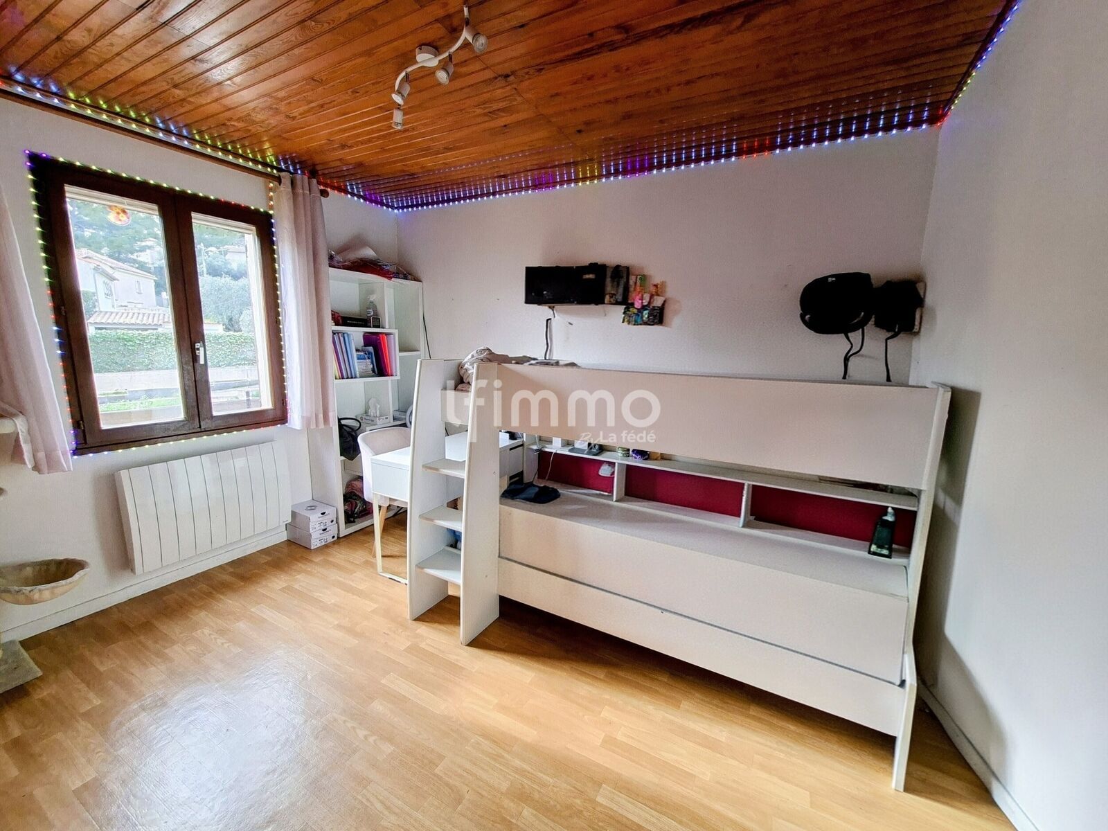 Le coin nuit chaleureux avec ses 2 chambres spacieuses avec placards de part et d'autre, une salle de bain de belle taille avec fenestron et les toilettes séparés.