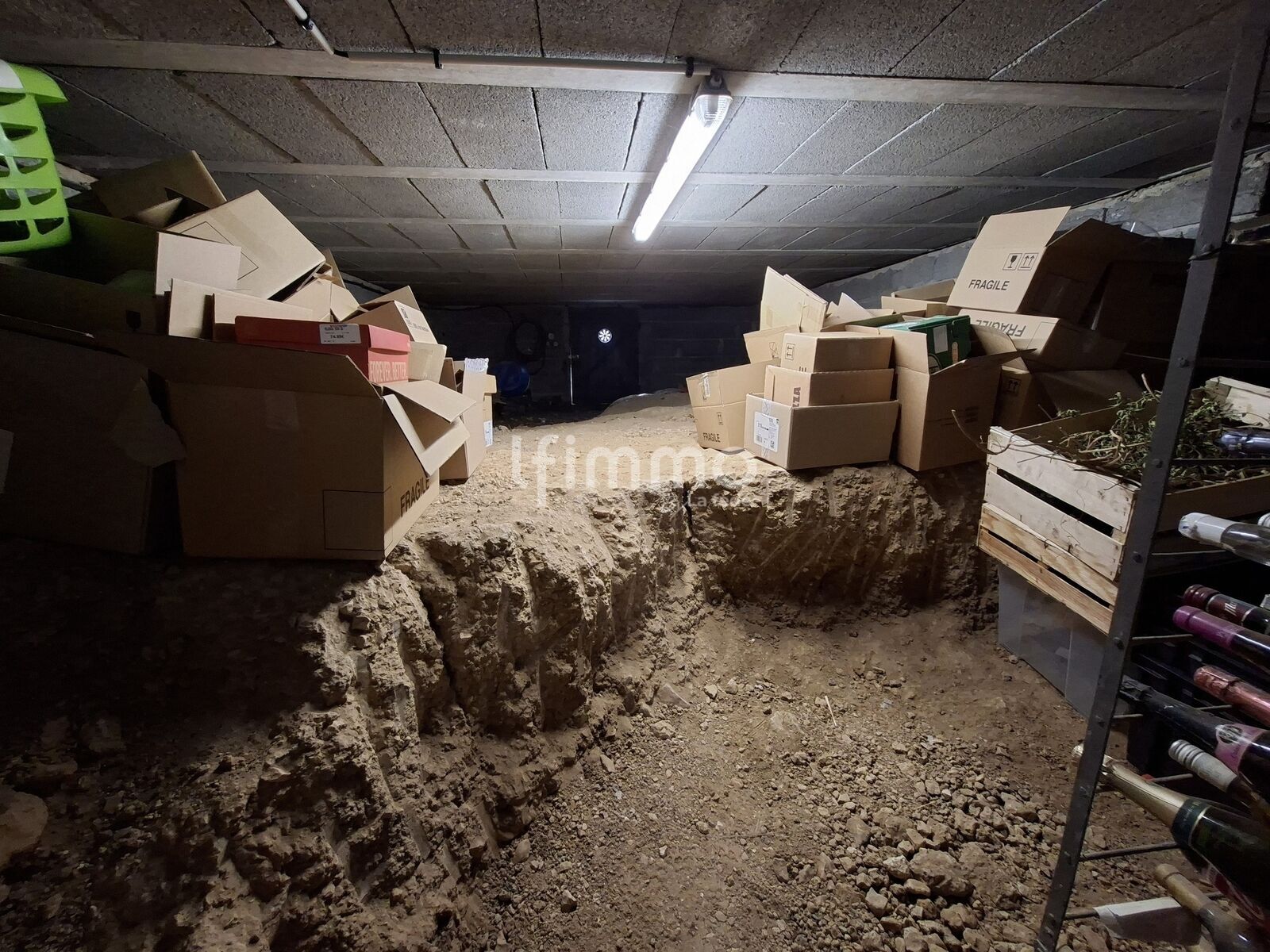 en sous-sol de la maison, une immense cave et un vide sanitaire ainsi qu'un espace rangement à multiples fonctions dont la possibilité d'y installer la machine à laver et sèche linge grace aux branchements déjà effectués.