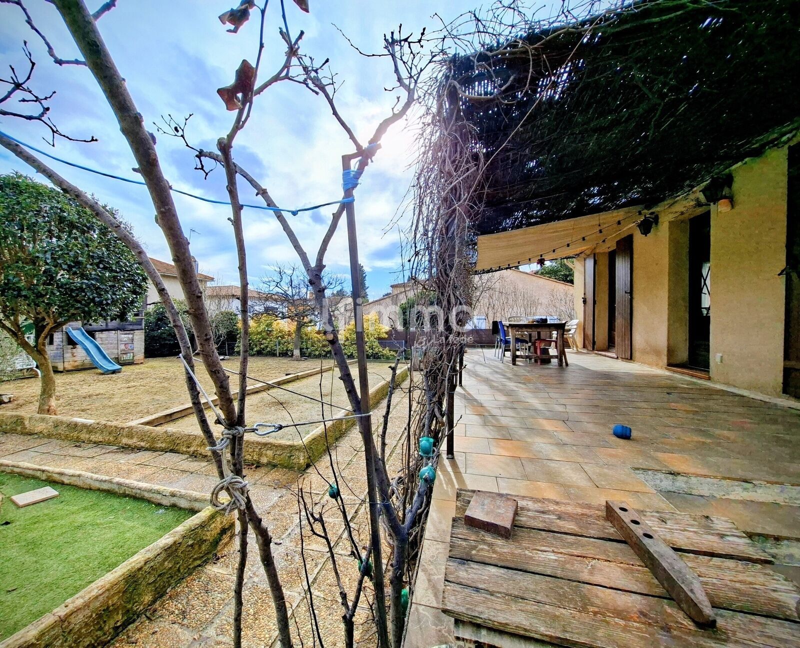 La parcelle de 690 m2 qui est piscinable est déjà équipée d'un beau terrain de boules pour des moments conviviaux, ainsi que d'un vaste potager pour le plaisir des grands comme des petits.