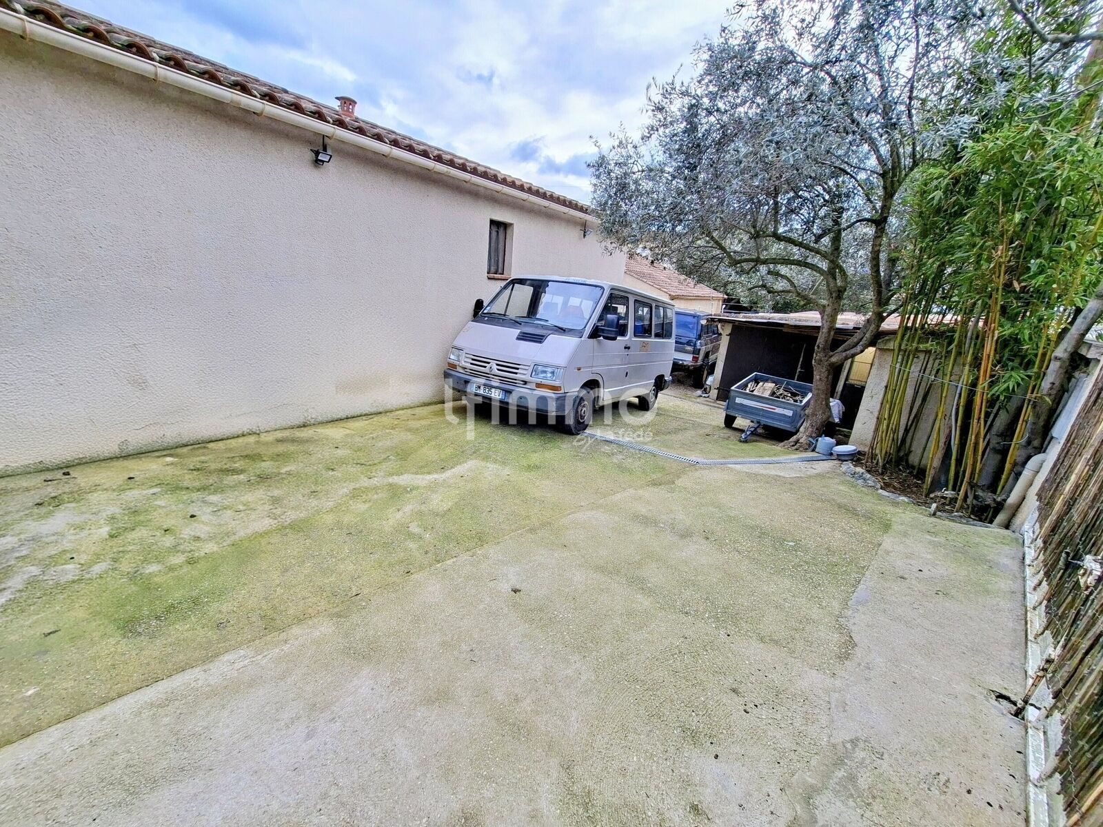 Sur le devant de la maison il y a un bel espace de stationnement pour plusieurs voitures en exterieur et donc dans la propriété, un garage à motos/ vélos/ outillage ainsi que la possibilité d'y rentrer une petite voiture.