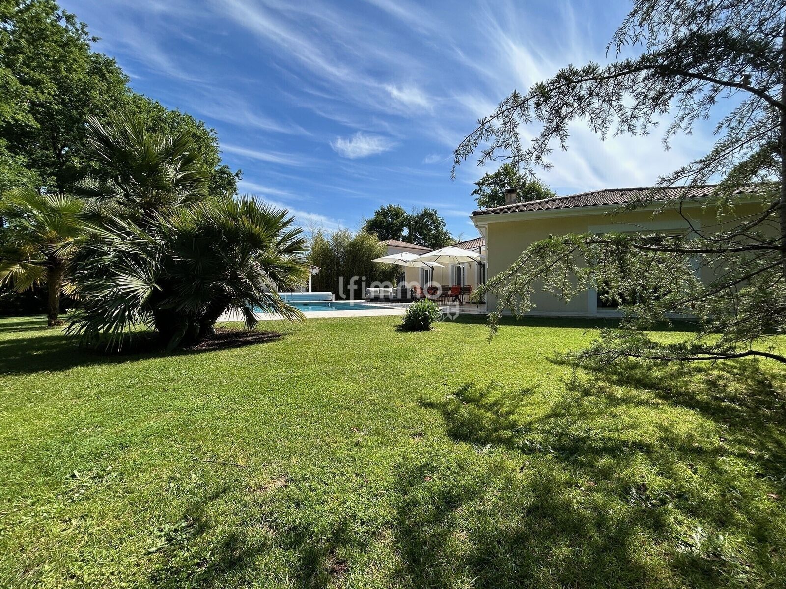 Au sein du quartier le plus huppé de La Brède, cette magnifique villa avec piscine est implantée sur une parcelle de plus de 2000 m2, sans vis à vis, et bénéficie d'un jardin arboré et paysagé, extrêmement bien entretenu et équipé d'un goutte à goutte. La maison, d'une superficie de 153m2 habitables (total de 195m2) se compose d'une entrée, d'un vaste séjour triple exposition de 50m2, donc très lumineux, avec une belle cheminée à insert, d'une magnifique cuisine dinatoire de 22m2, avec des équipements haut de gamme dont une cave à vins, de 4 chambres spacieuses et lumineuses de 12m2 dont une parentale avec salle d'eau, d'une salle de bain avec baignoire, douche à l'italienne et wc, d'un bureau de 10m2 équipé de larges rangements (pouvant être une cinquième chambre) et d'un wc séparé. Les prestations sont complétées par une buanderie de 10m2 et d'un garage de 33m2.