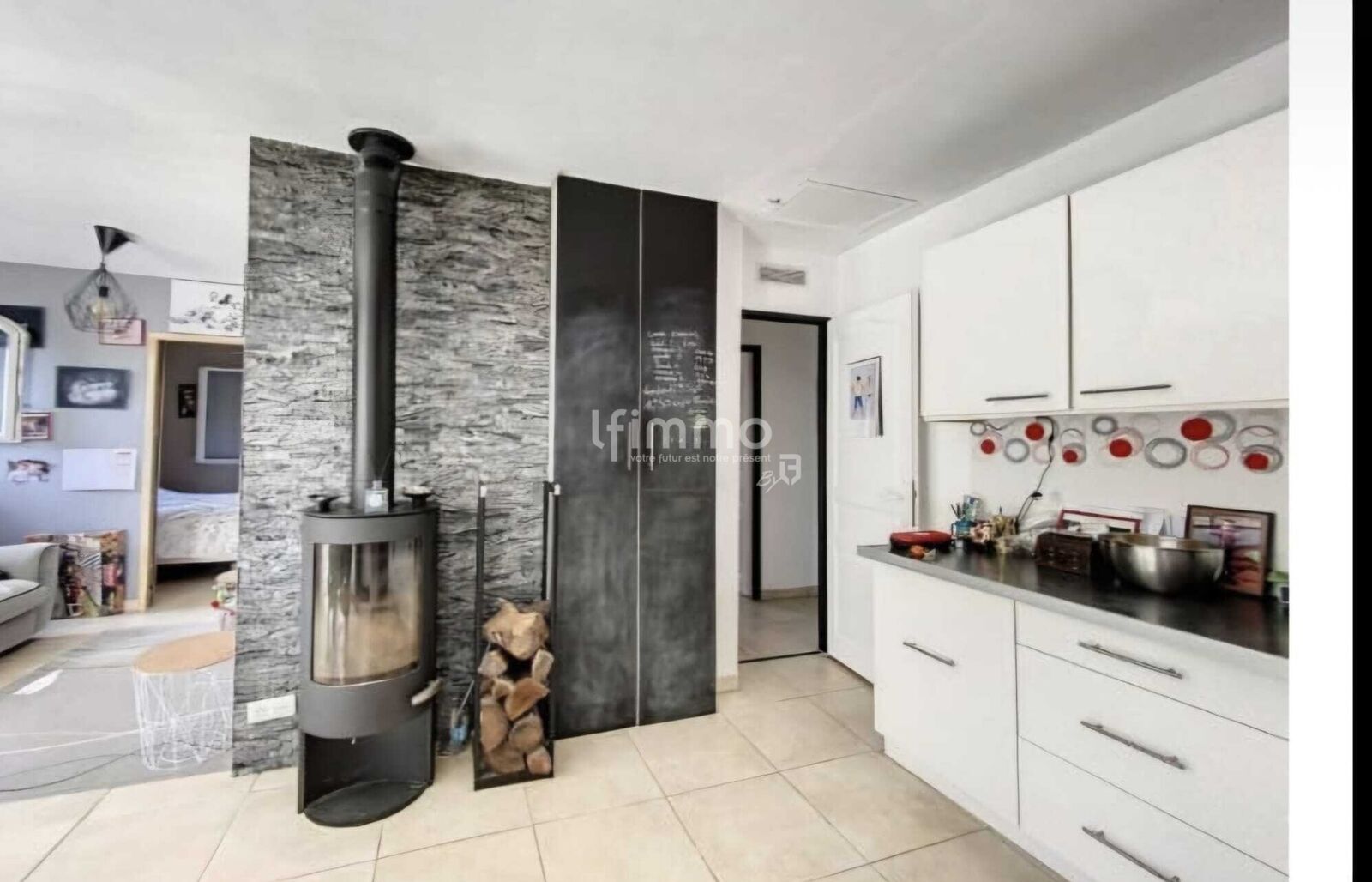 La maison est équipée d'une cuisine américaine moderne et fonctionnelle, idéale pour préparer de délicieux repas en famille. Comprenant un séjour avec poêle a bois , ouvert sur la terrasse et jardin. Le chauffage au bois et la climatisation réversible garantissent un confort optimal tout au long de l'année.