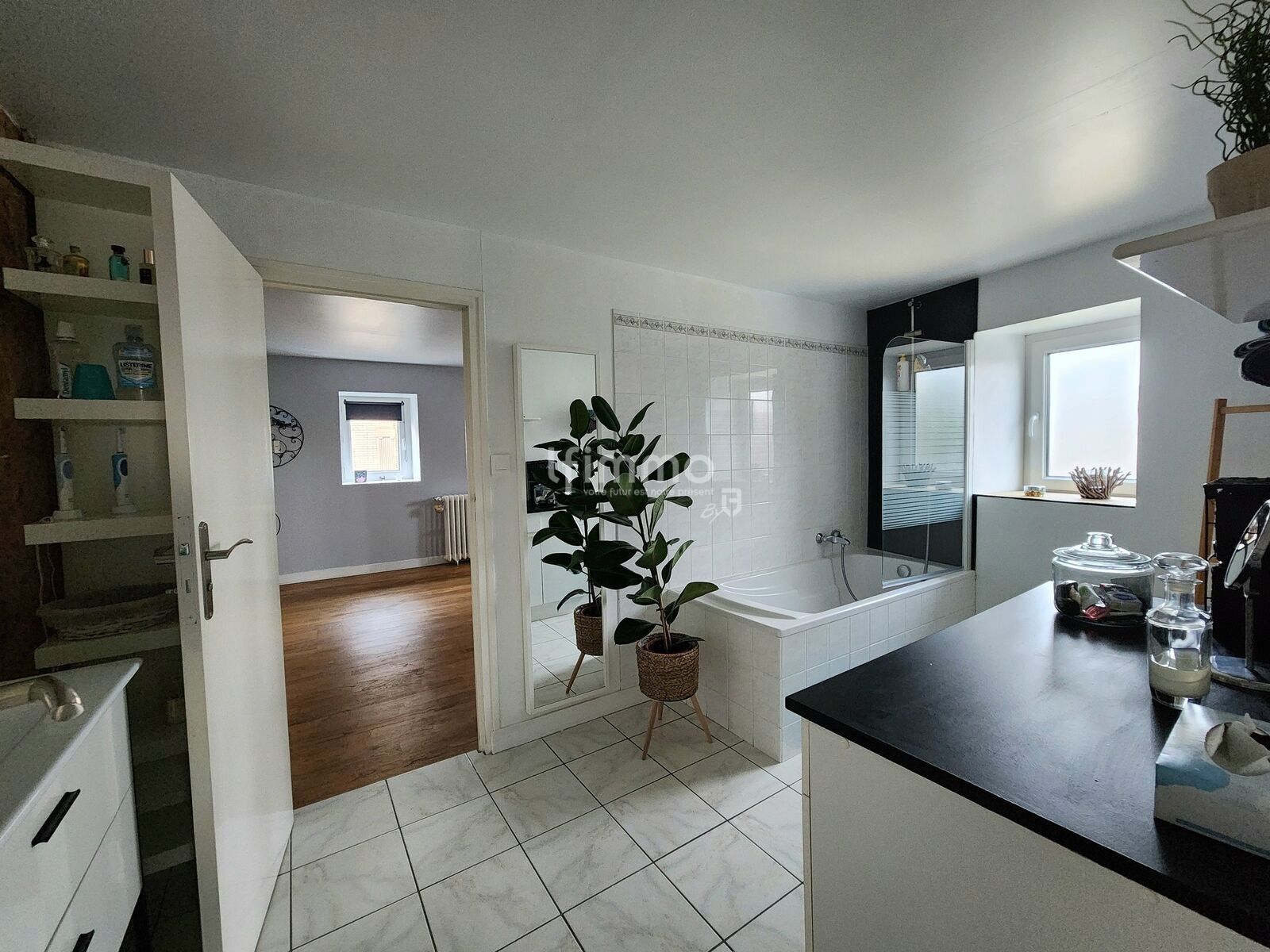 Vous y trouverez également trois chambres, dont deux communicantes avec la salle de bains de 8,5 m² et un WC séparé.