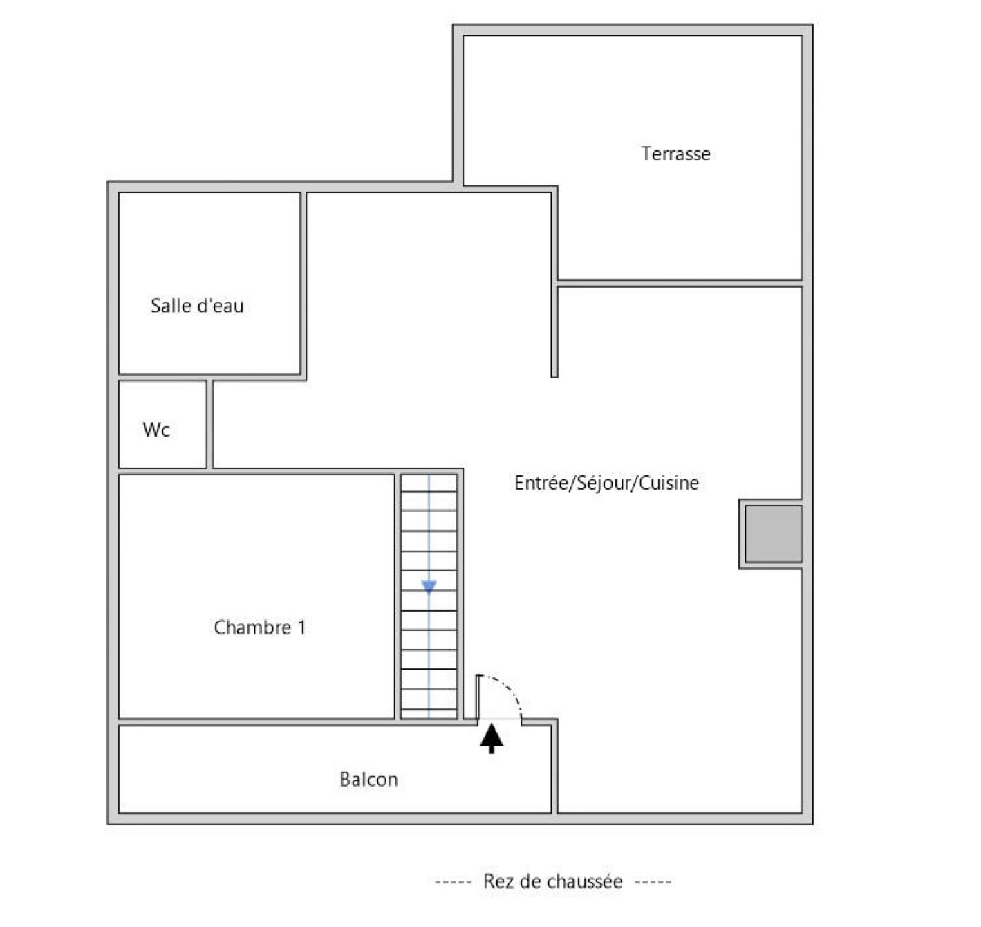 Au rez-de-chaussée, une Entrée dessert une belle Pièce de vie avec Cuisine ouverte et accès terrasse, un dégagement, une Chambre, une Salle d'eau, WC.