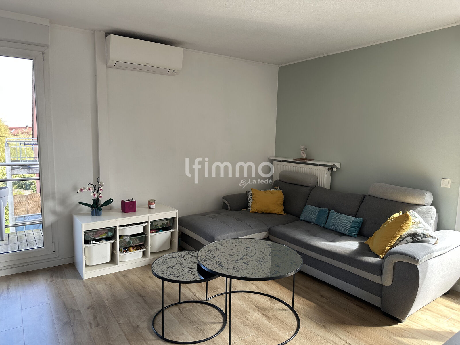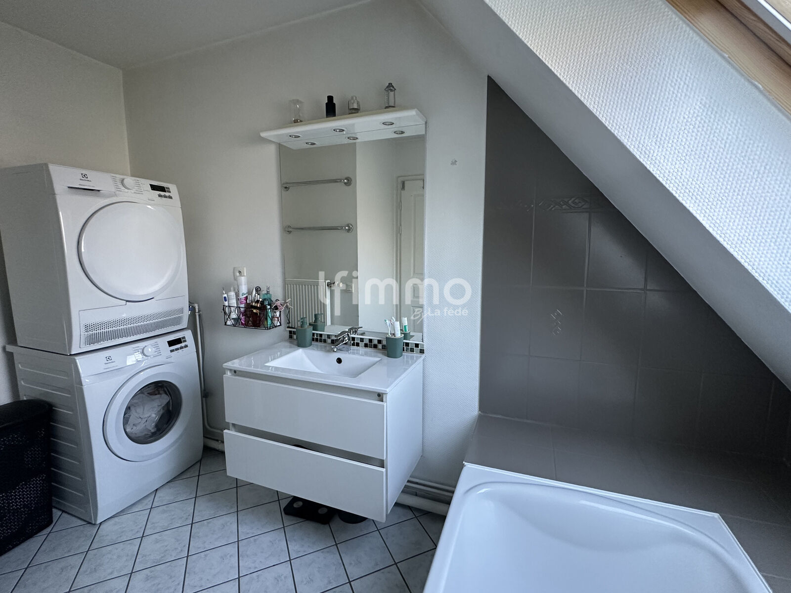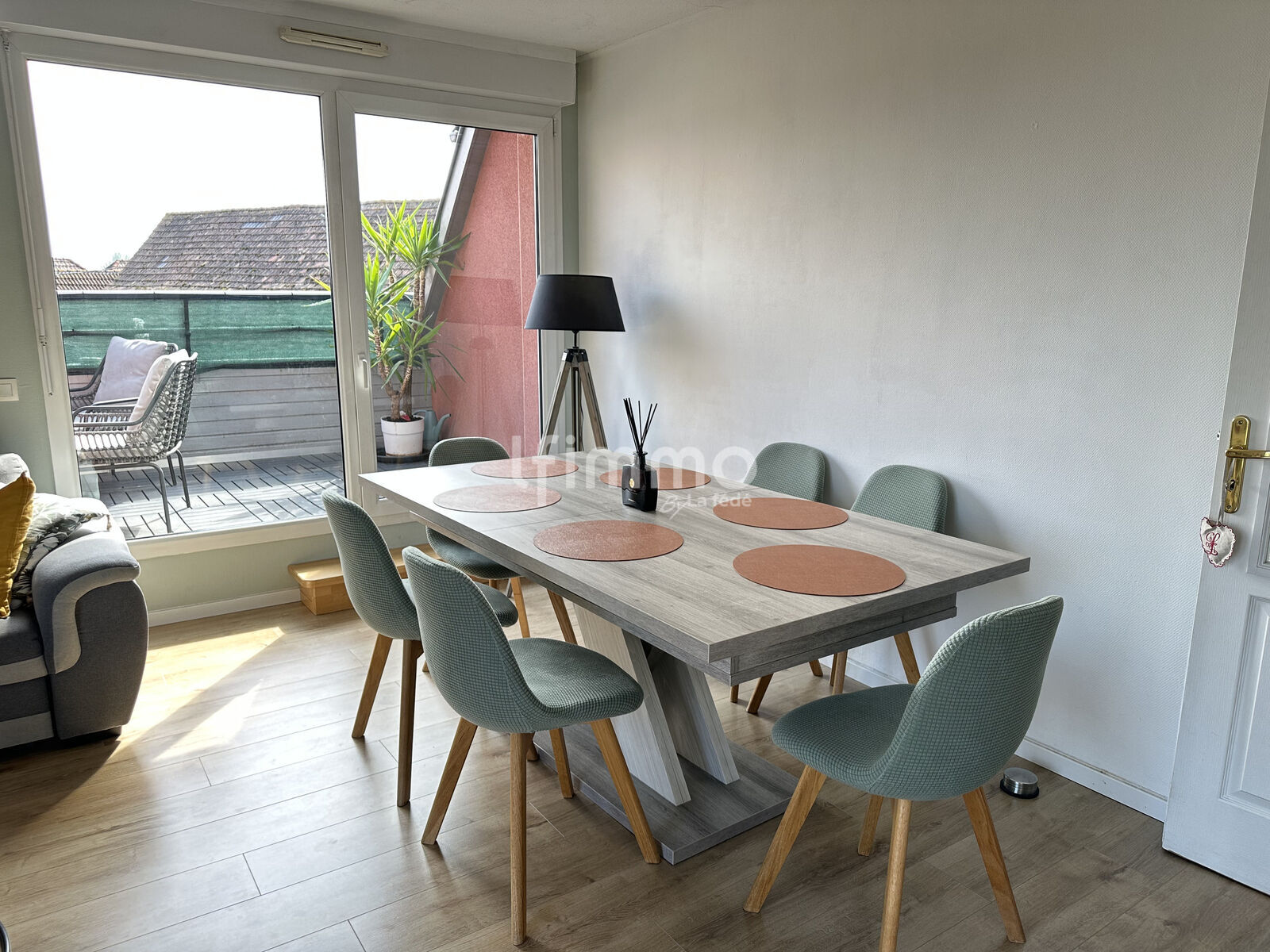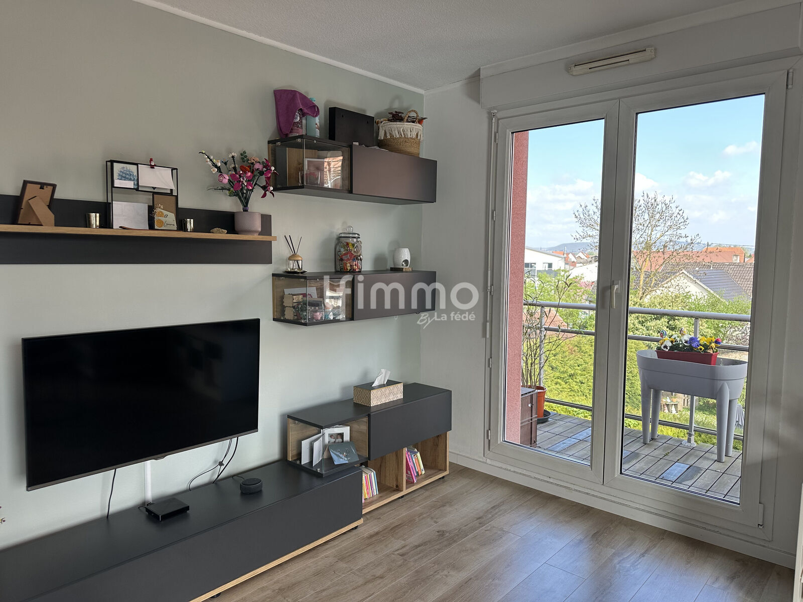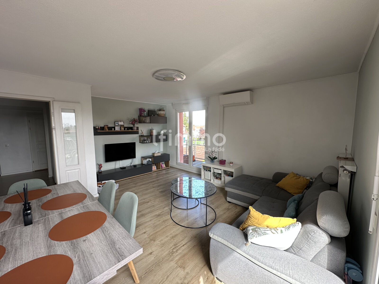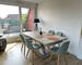 Séjour lumineux avec accès balcon, cuisine équipée avec espace repas, salle de bains fonctionnelle avec espace dédié lave-linge et sèche-linge, rangement et WC indépendant.