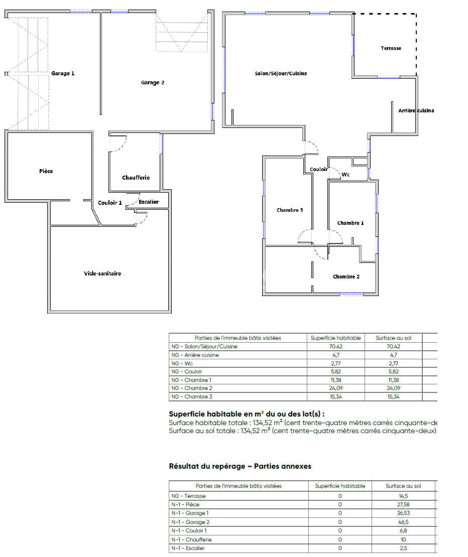 Édifiée sur deux niveaux, la maison propose au rez-de-jardin un garage ainsi que des espaces de débarras exploitables, idéals pour du stockage, un atelier ou un futur aménagement selon vos besoins.
